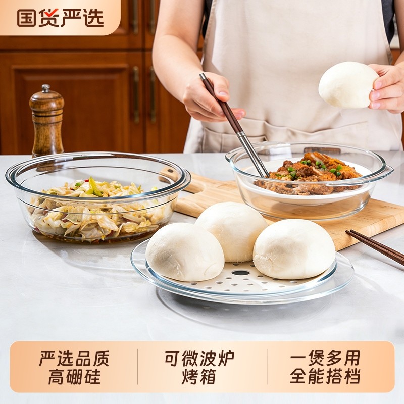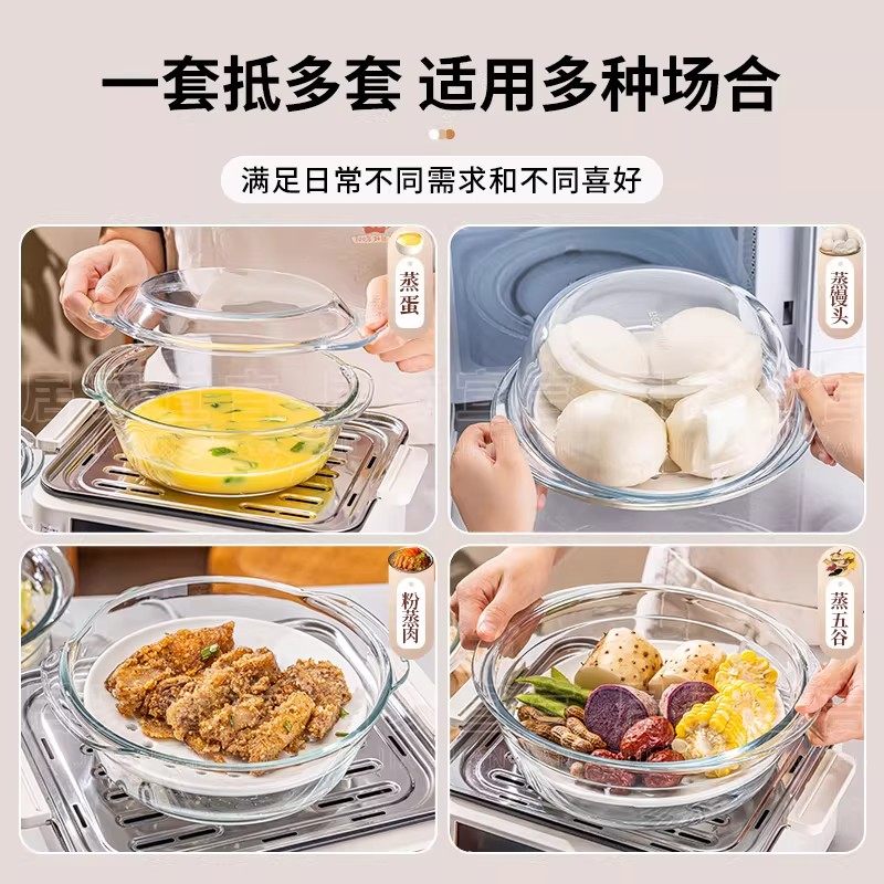 玻璃碗微波炉加热专用饭盒器皿容器耐高温家用蒸碗大汤碗陶瓷蒸盘