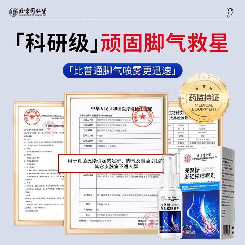 北京同仁堂脚气止痒脱皮杀菌真菌感染喷雾烂脚丫脚后跟干裂角化型