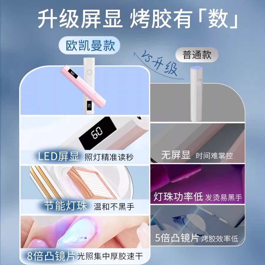 美甲一字灯小型手持光疗灯指甲油胶速干烤灯照灯不黑手穿戴甲片