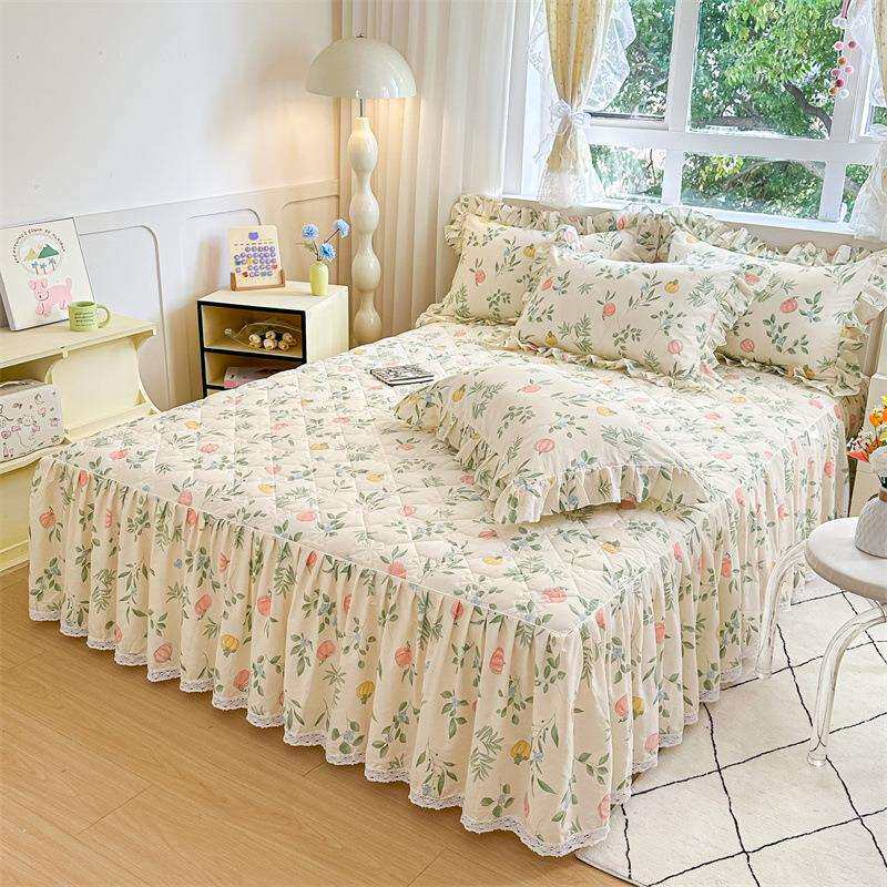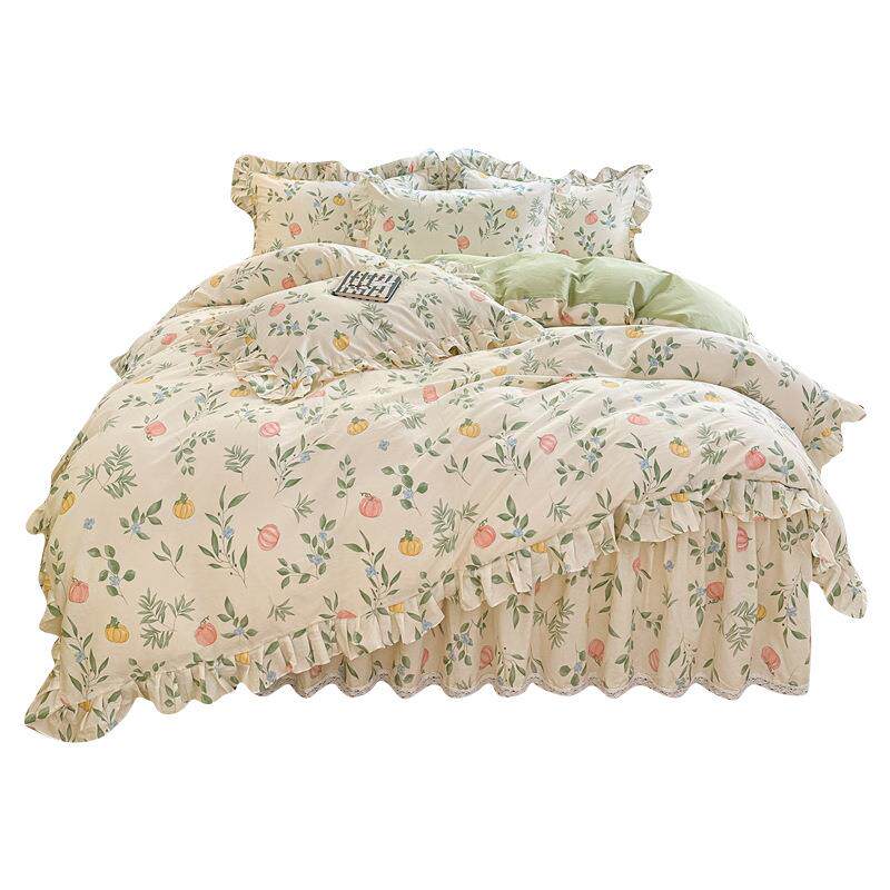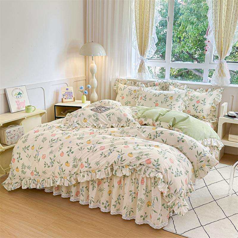 韩版网红纯棉床盖四件套少女清新全棉被套碎花田园床裙款床上用品
