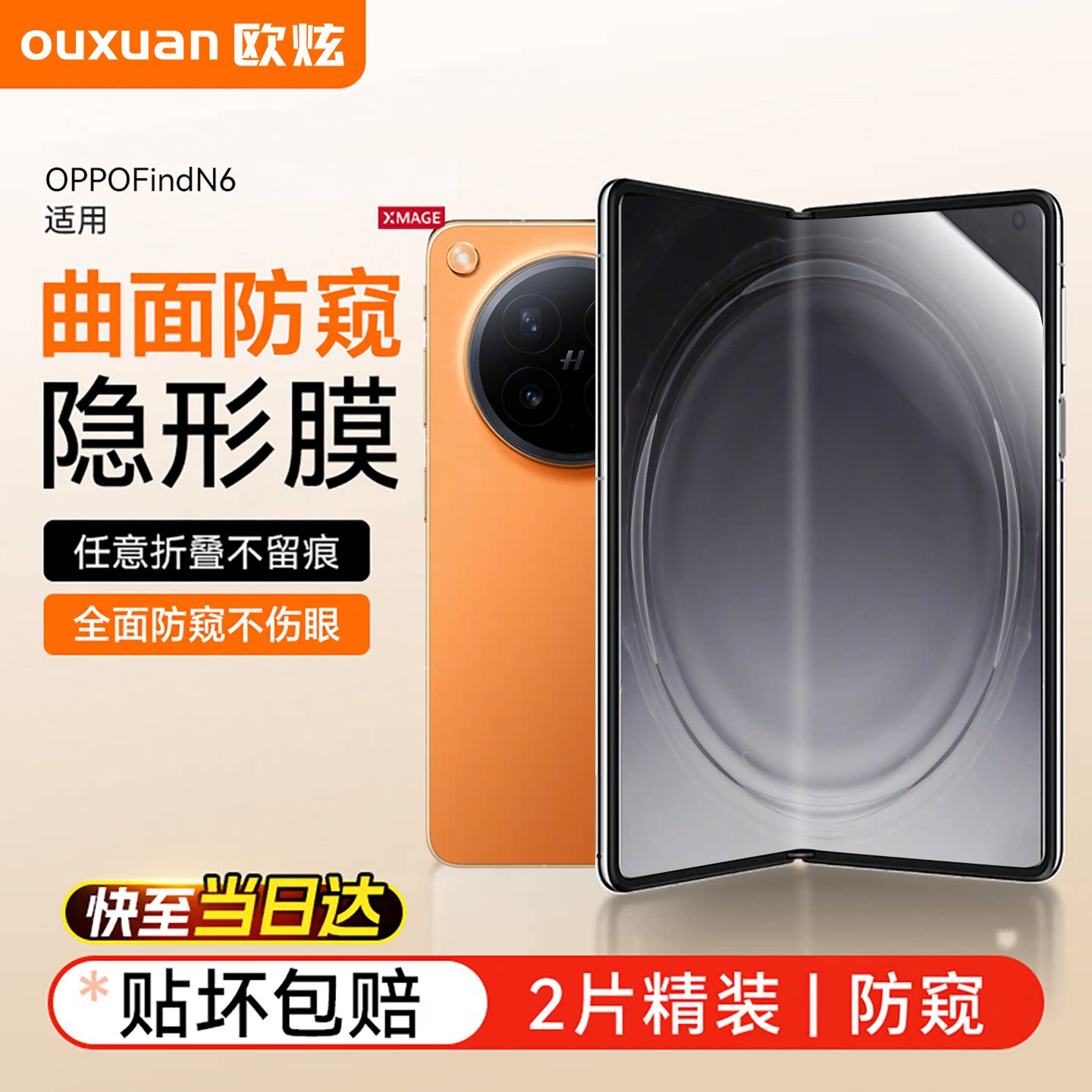 【隐形防窥护眼膜】欧炫适用OPPOFindN6防窥钢化膜findn5手机保护膜新款N3折叠屏全胶覆盖n2水凝内外屏幕贴膜