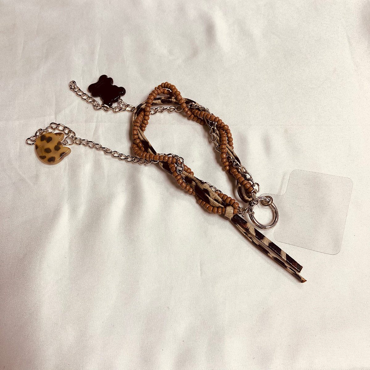 个性创意豹纹流苏串珠手提链手腕短挂绳壳汽车钥匙扣包包挂件