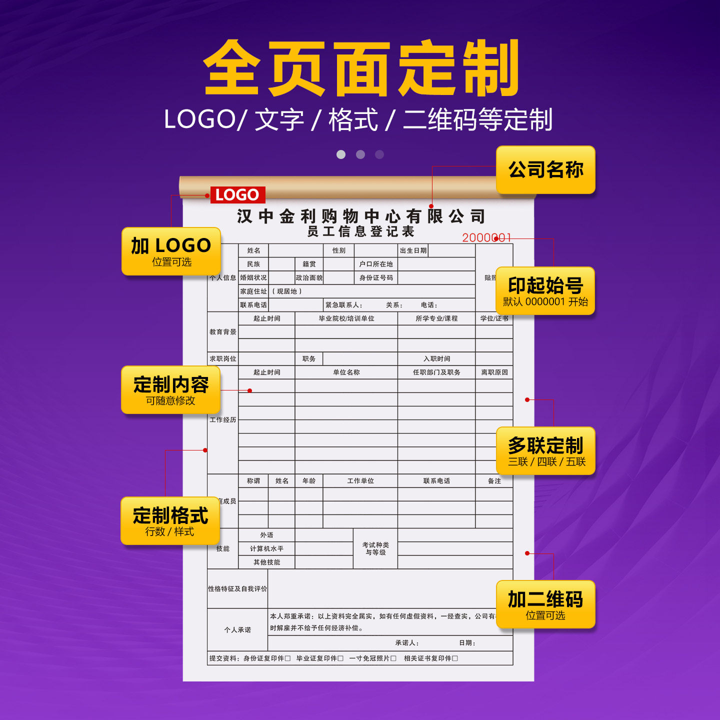 【员工信息登记表】定制公司职员入职档案统计表职工个人资料记录簿人事行政招聘简历表企业花名册工人履历表
