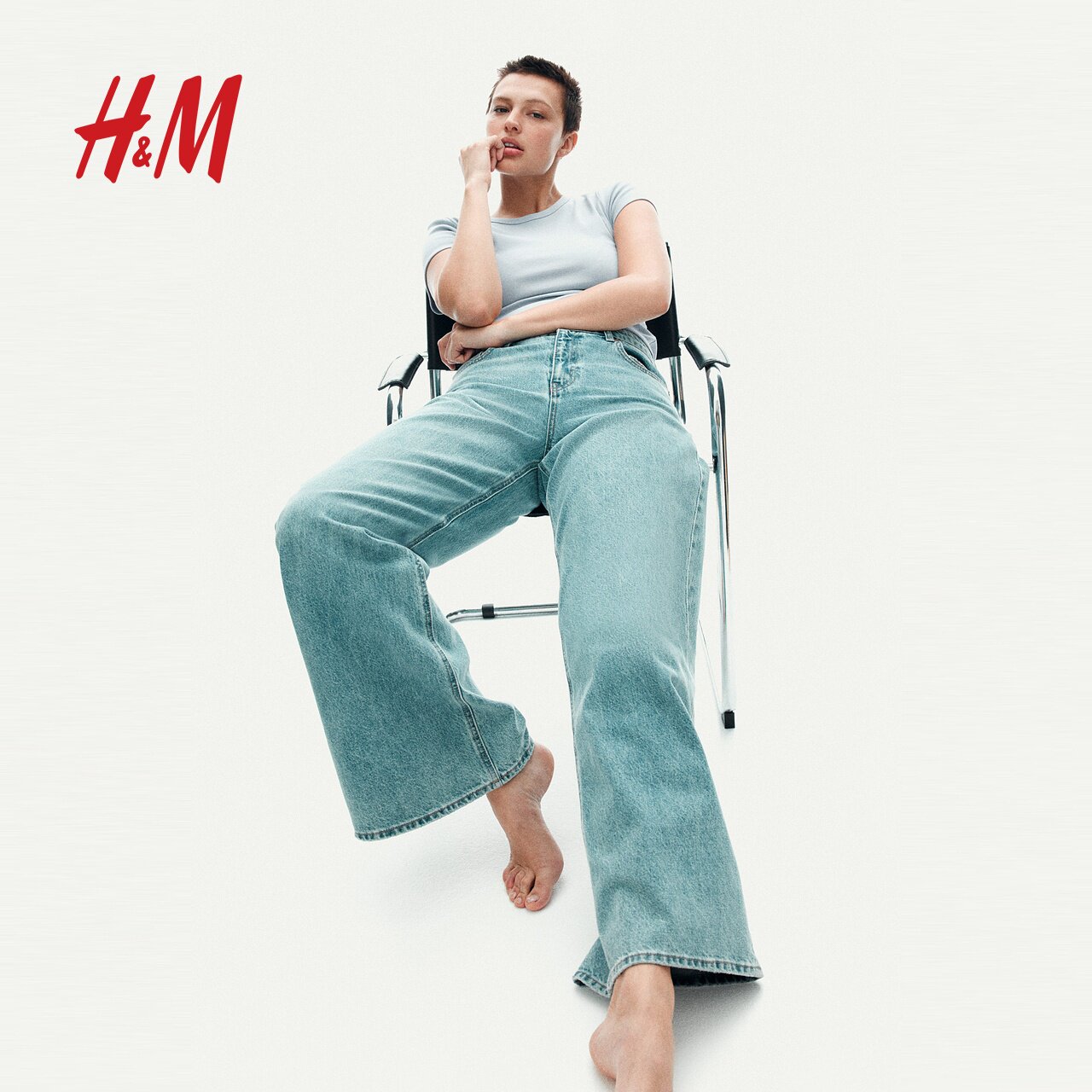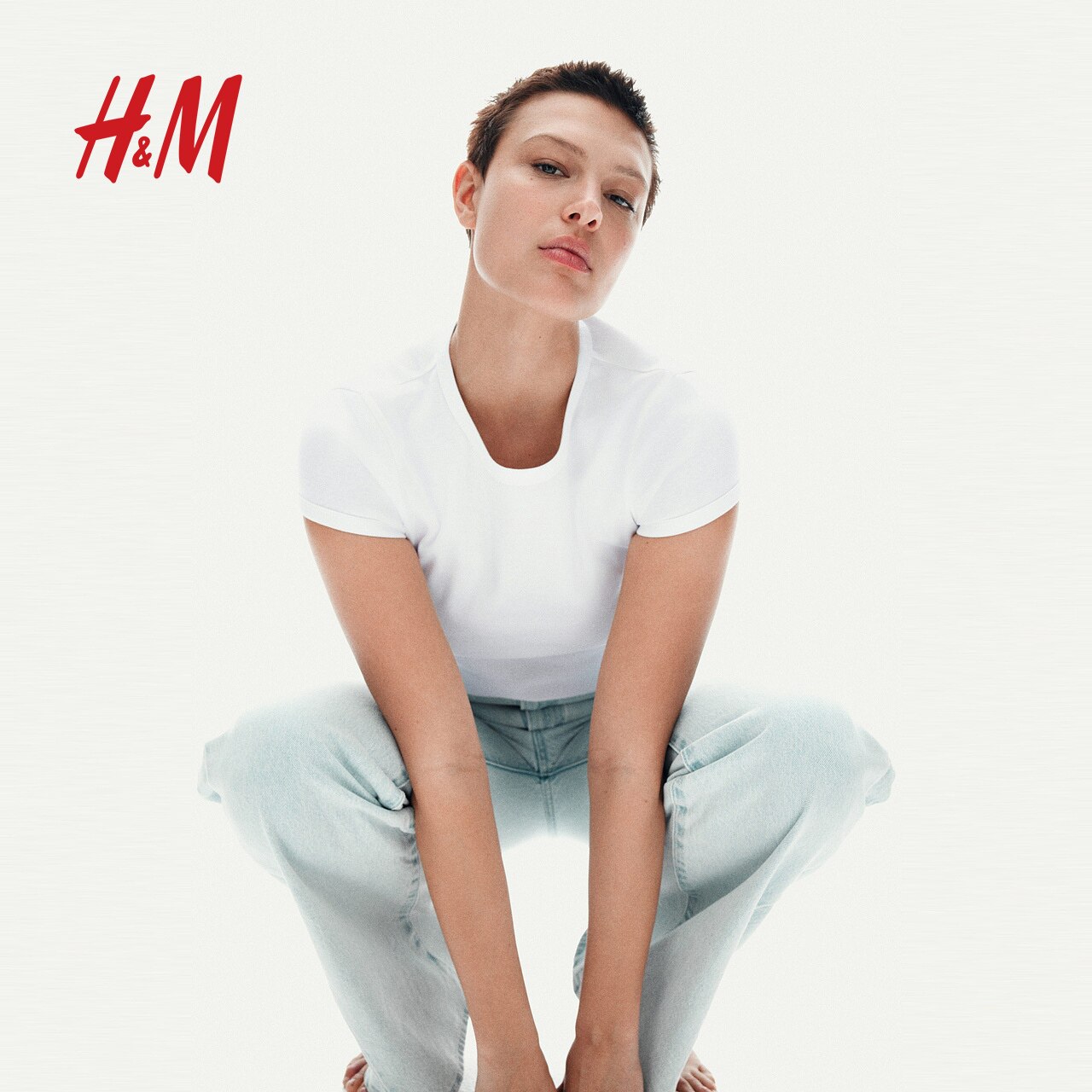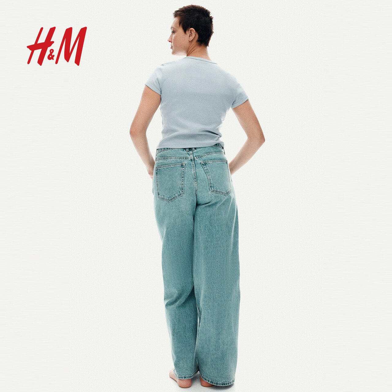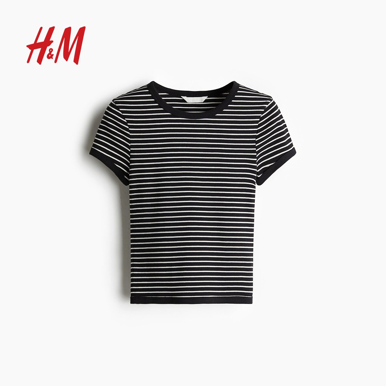 HM女装T恤春季修身圆领窄边领口辣妹棉质短袖上衣1272268