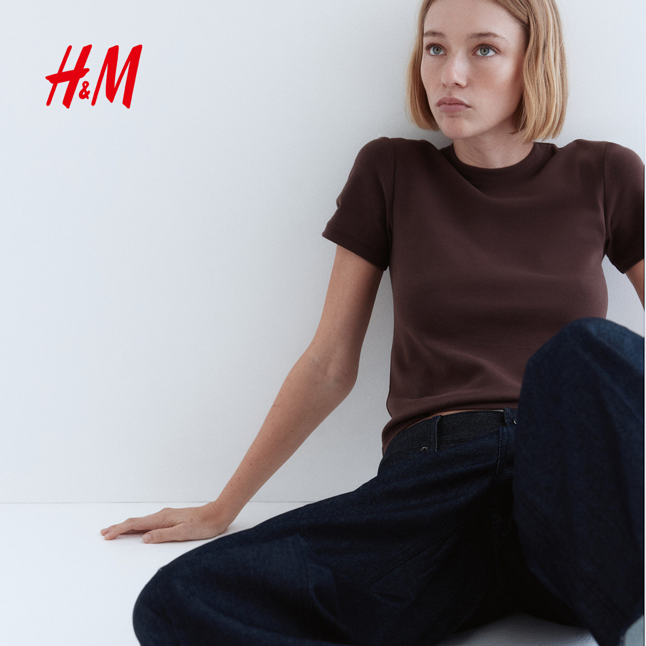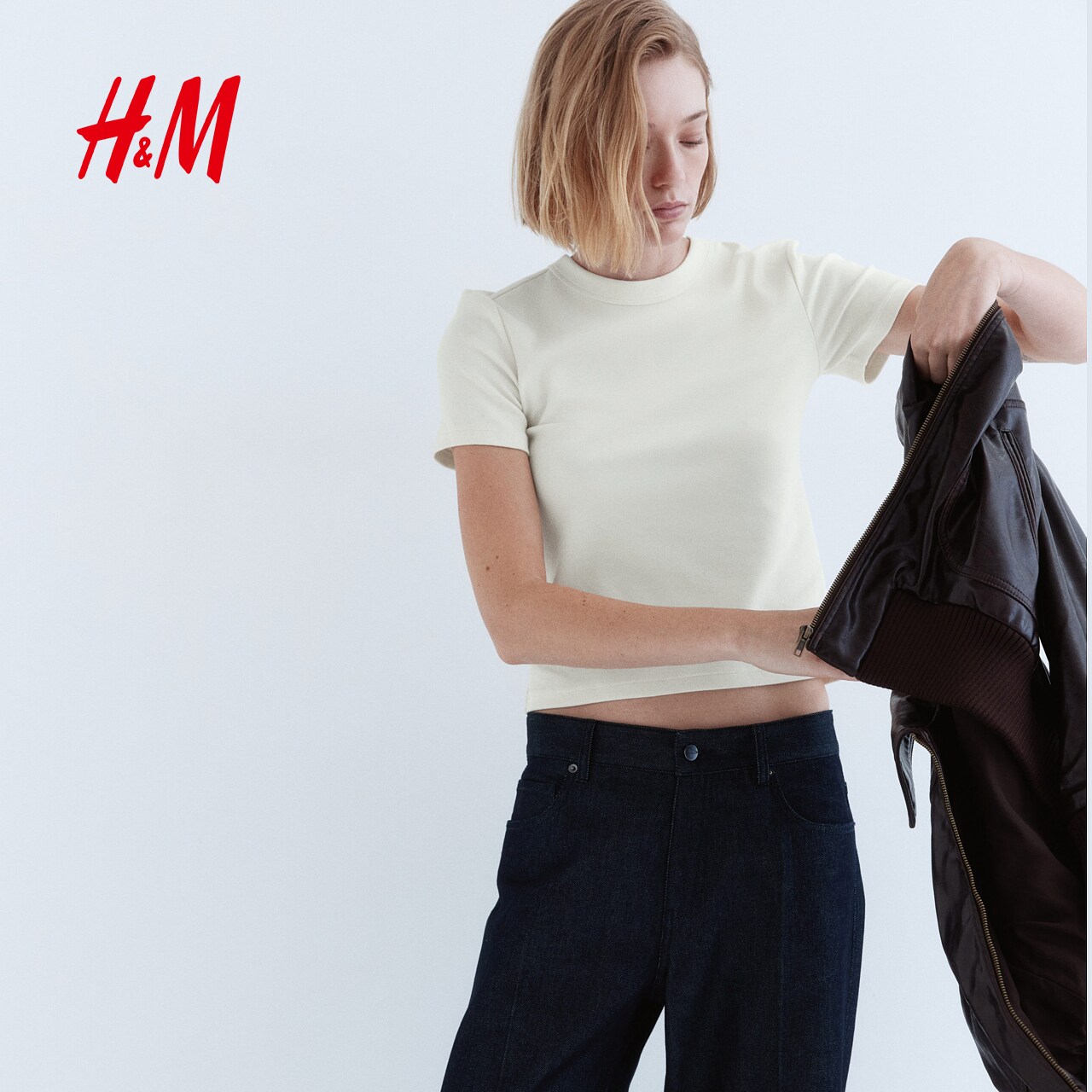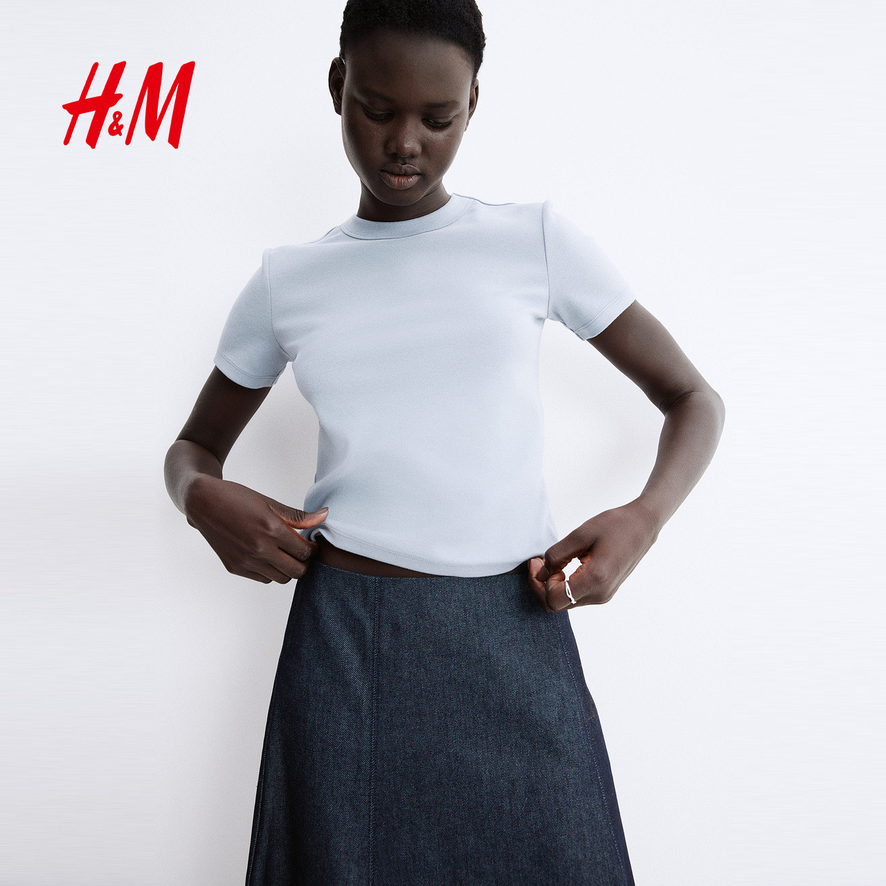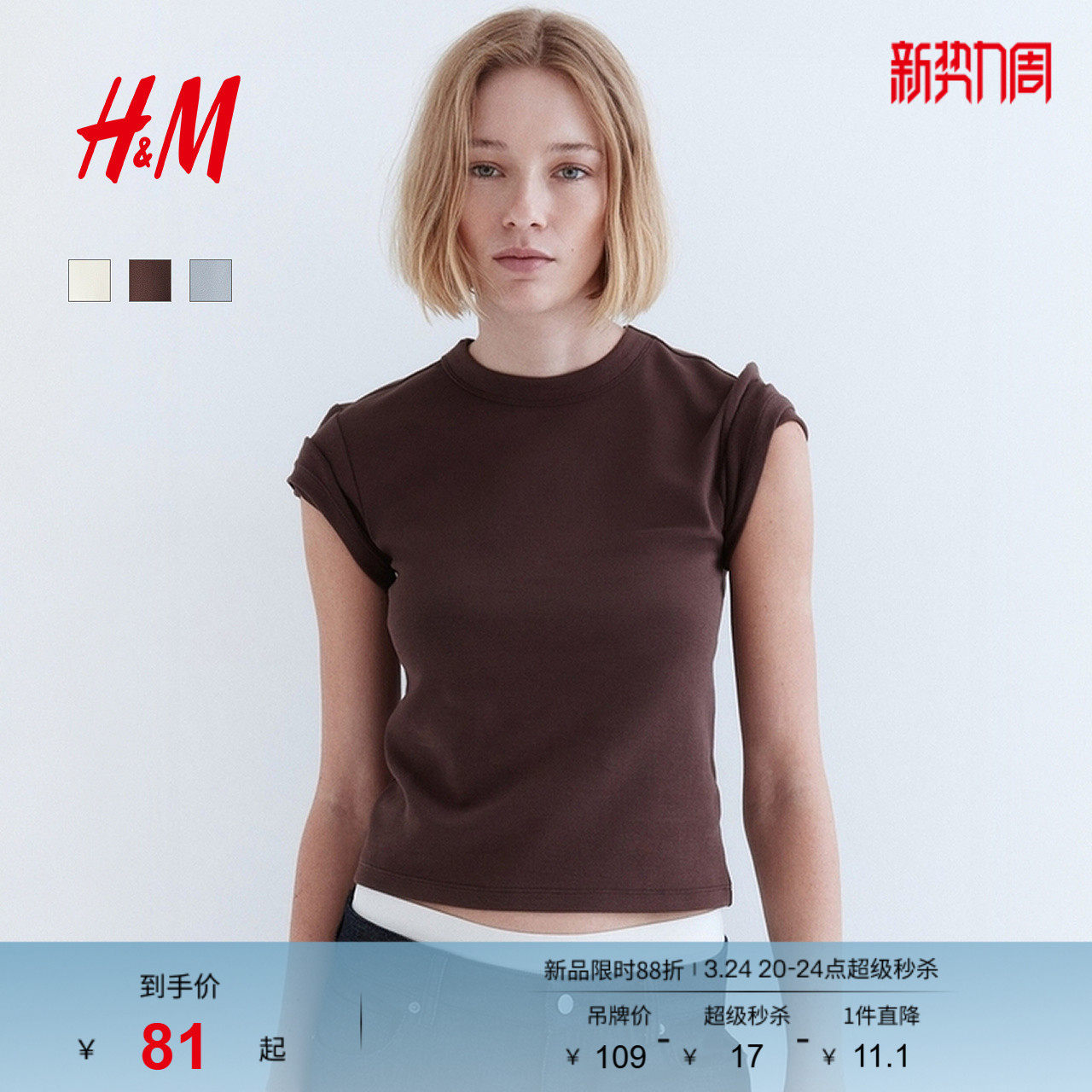 HM女装T恤春季圆领基础打底修身棉质短袖T恤上衣1301264
