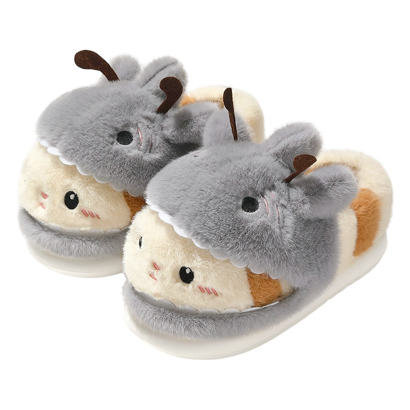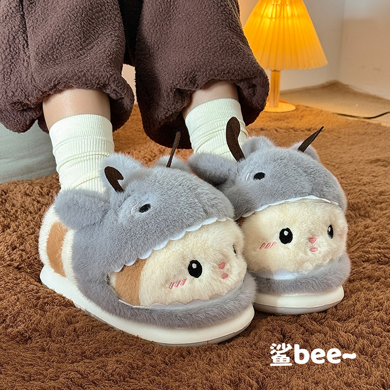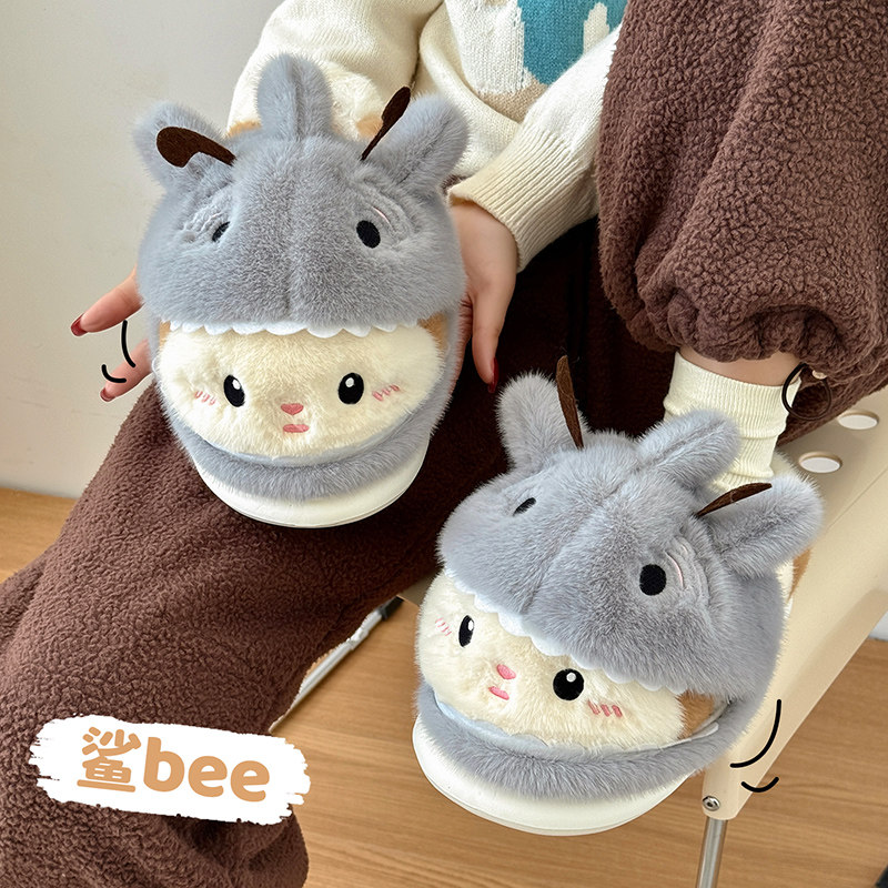 可爱鲨bee棉拖鞋女冬季25新款家居厚底包跟保暖鲨鱼蜜蜂情侣棉拖