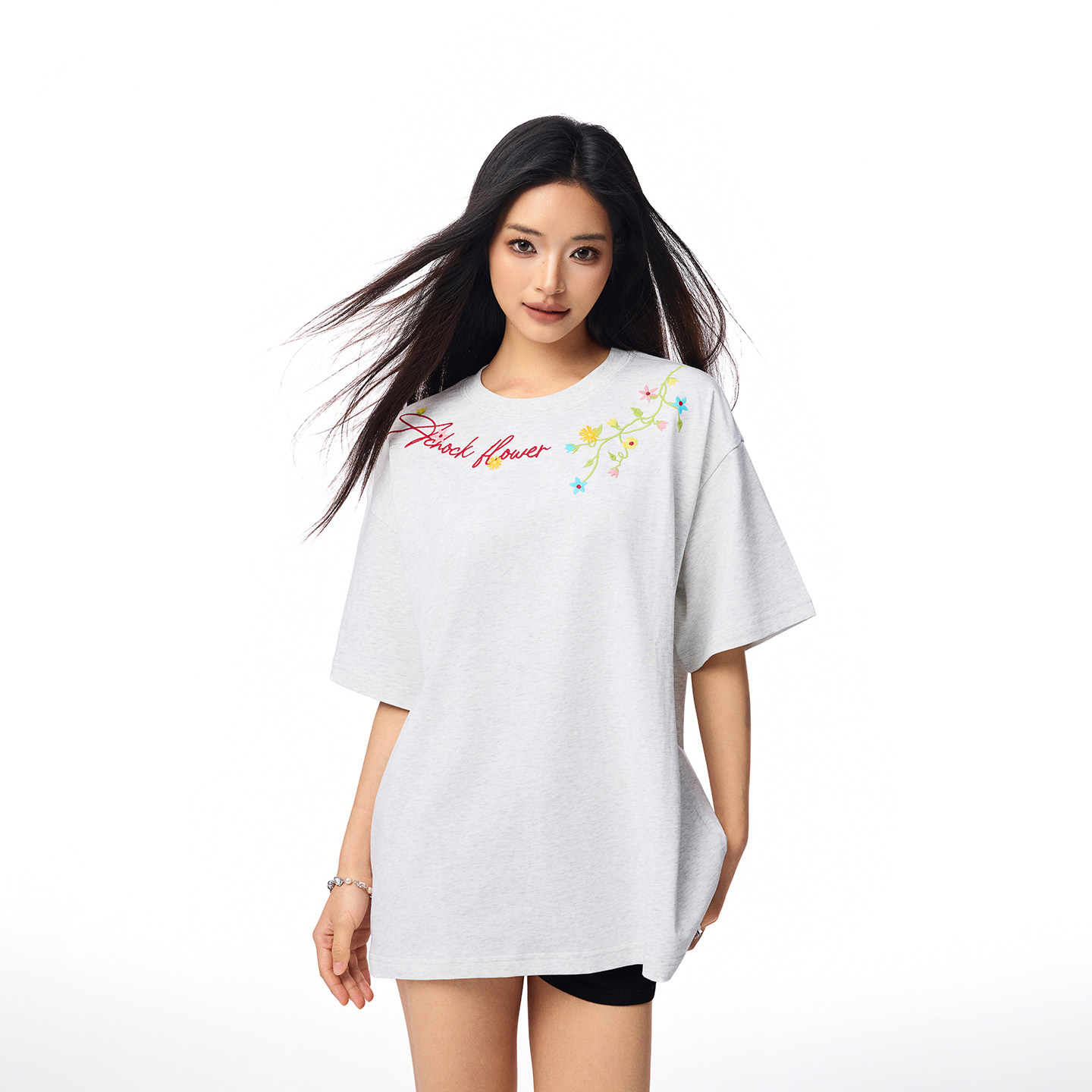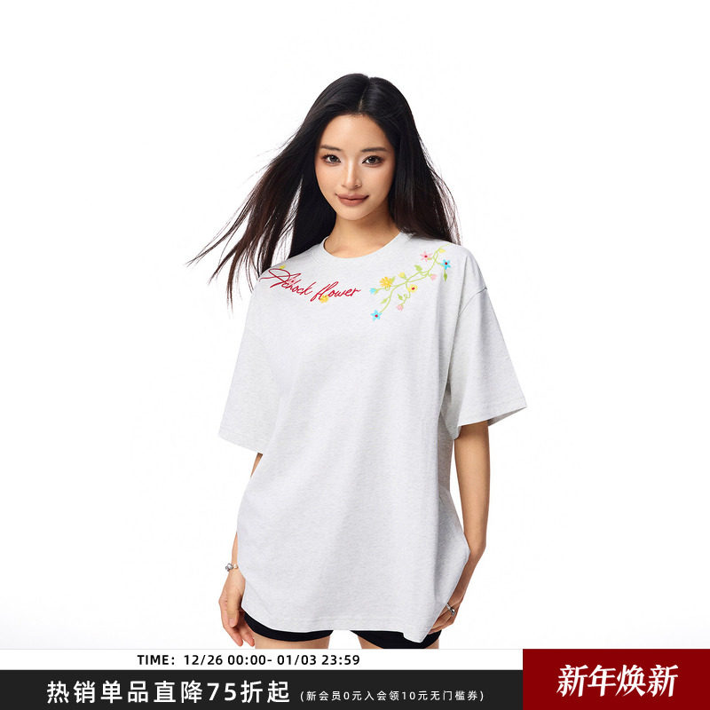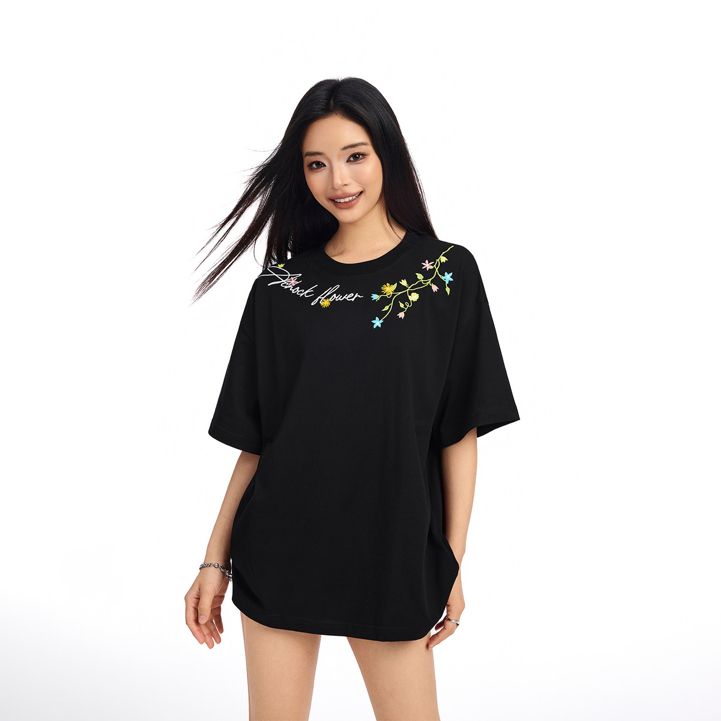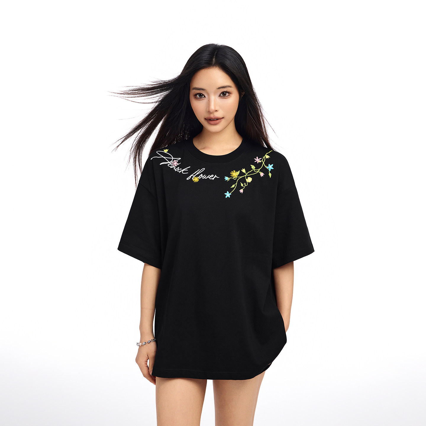 【Achock官方店】美式嘻哈花卉刺绣半袖T恤潮牌新款情侣圆领短袖