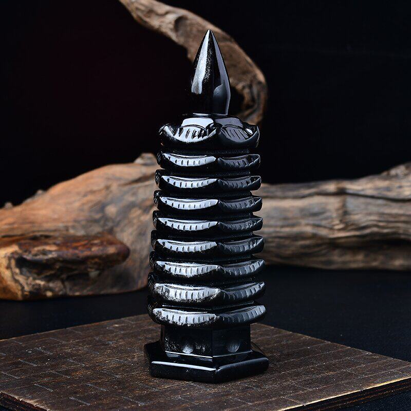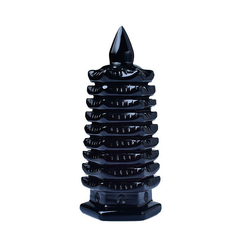 天然黑曜石文昌塔摆件九层塔13层书房办公水晶桌面摆设葫芦吊坠