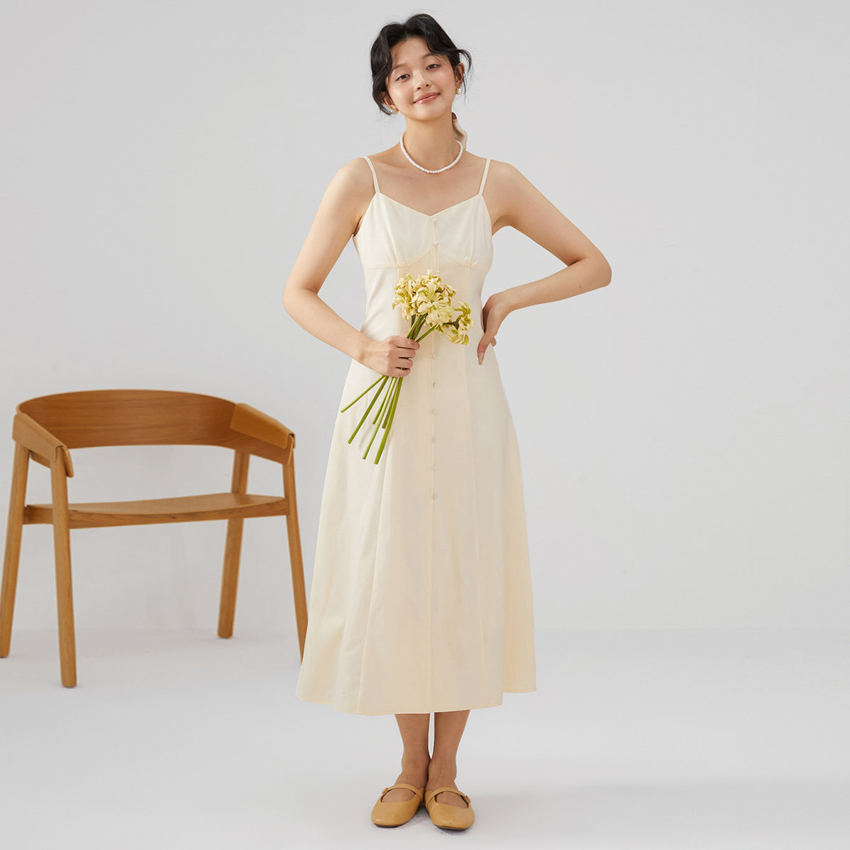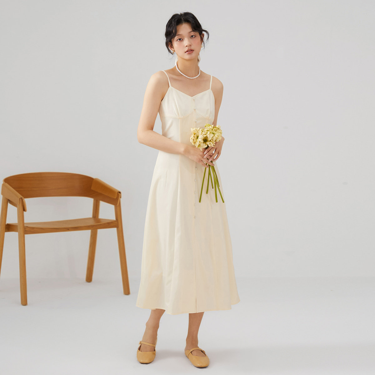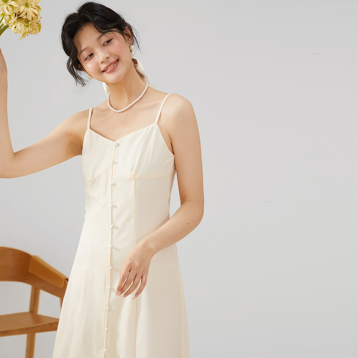 【papi同款】半练带胸垫吊带裙纯欲气质挂脖连衣裙黑裙子粉色长裙