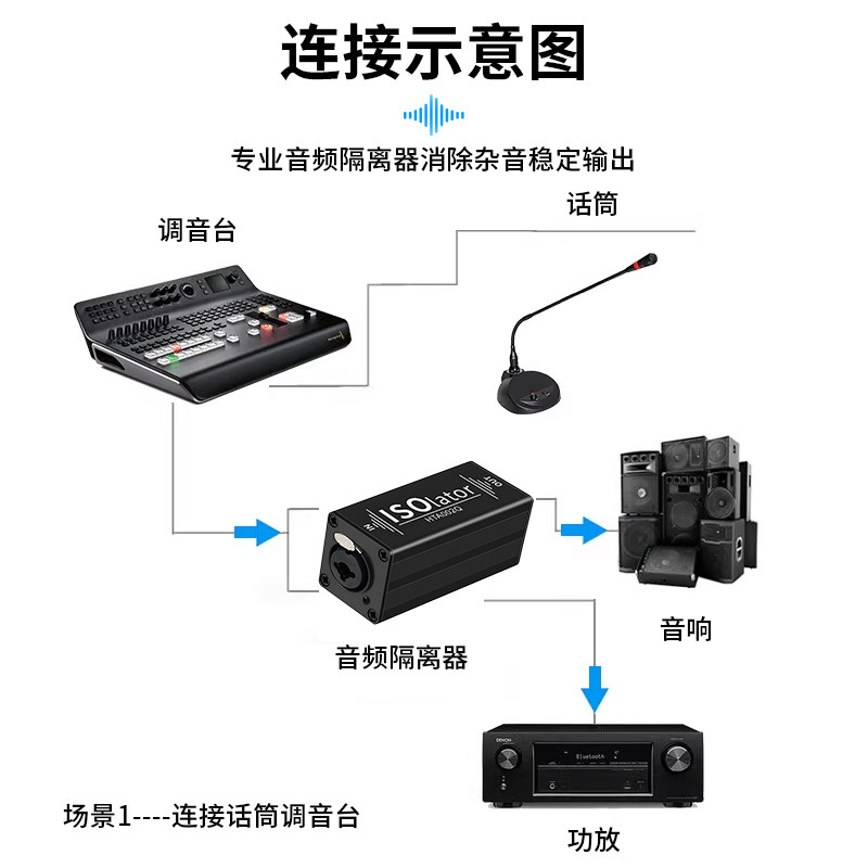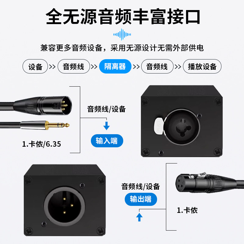 XLR音频隔离器音响杂音消除器隔离音频信号单通道6.35音频降噪器