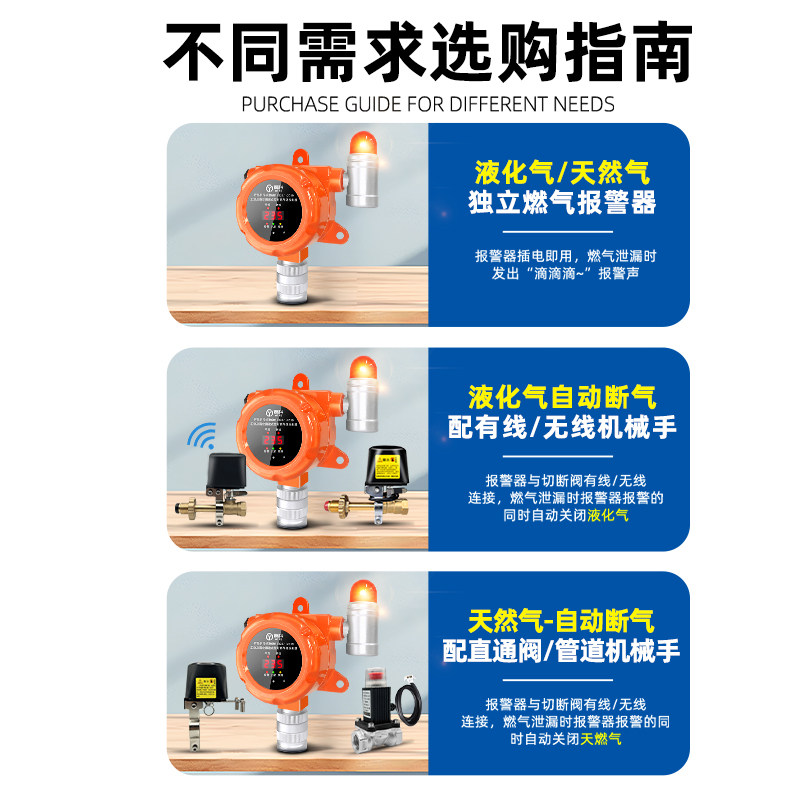 燃气报警器商用煤气泄漏用液化气天然气可燃气体探测仪厨房无线