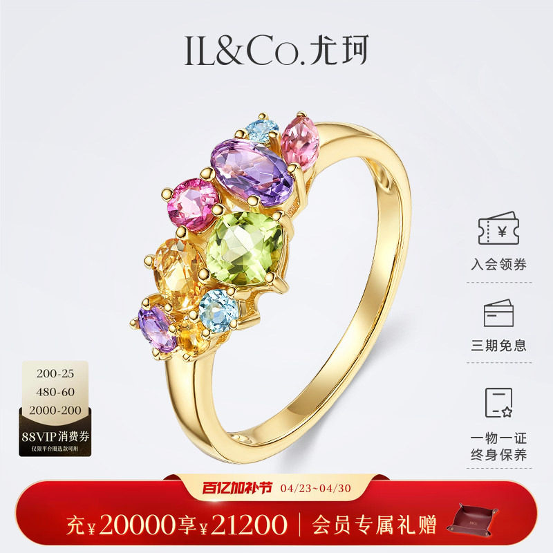 ILCO尤珂「和彩旋律」黄18K金天然多色宝石戒指彩虹碧玺彩宝女戒