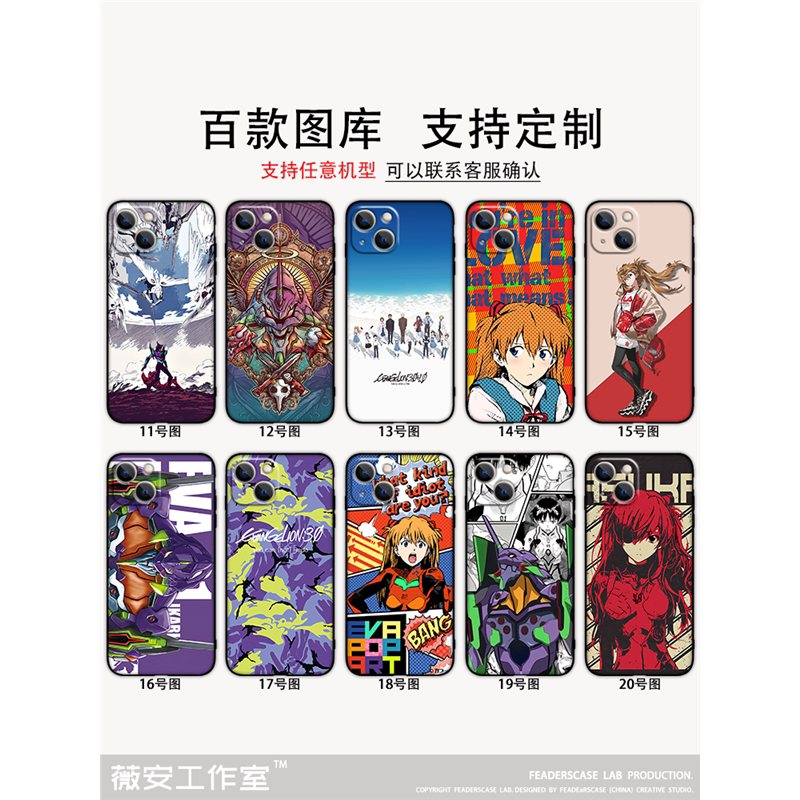 EVA初号机手机壳适用苹果14/13ProMax华为nova8/9/P40/P50荣耀70小米13/11红米K50动漫iqoo11vivoX90Reno9pro