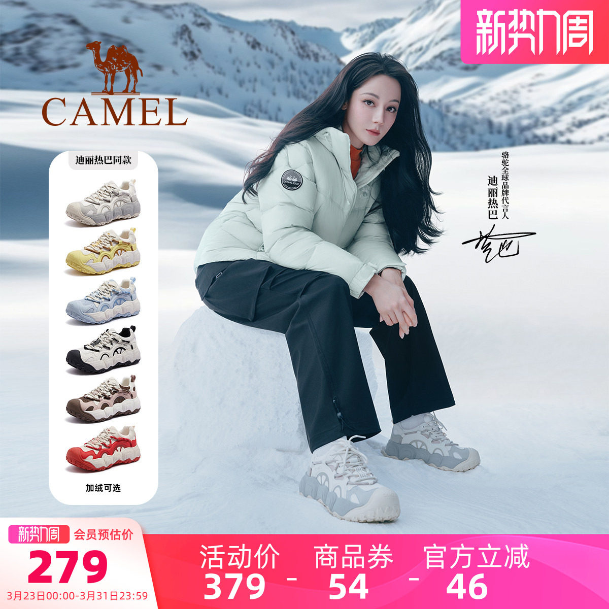 【迪丽热巴同款】骆驼银月户外复古老爹鞋女鞋秋季新款加绒运动鞋