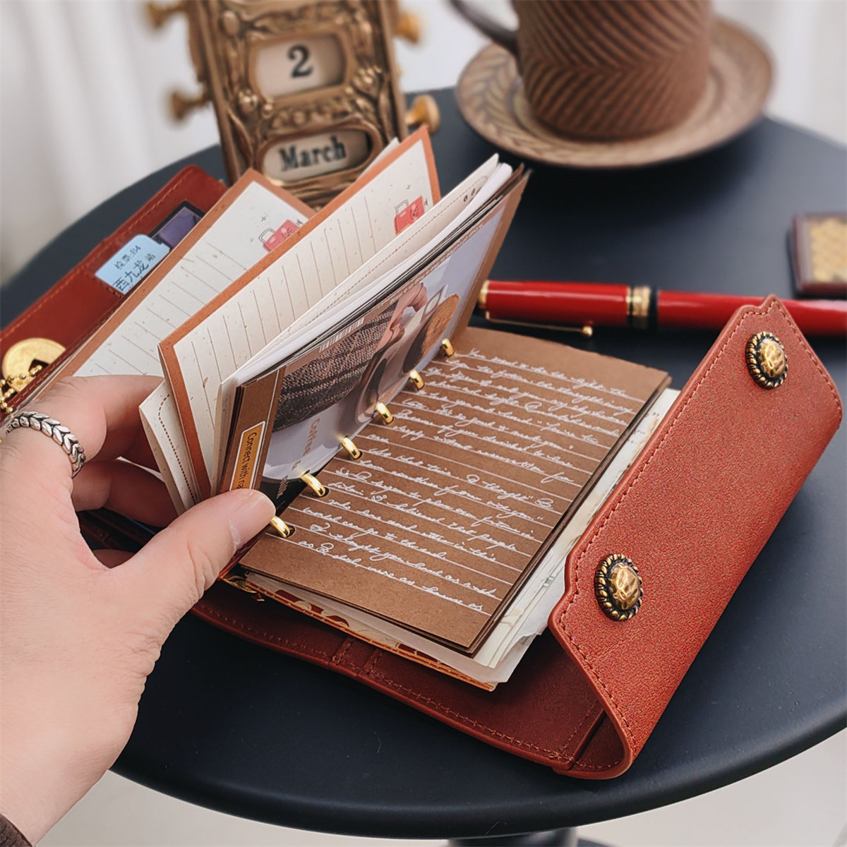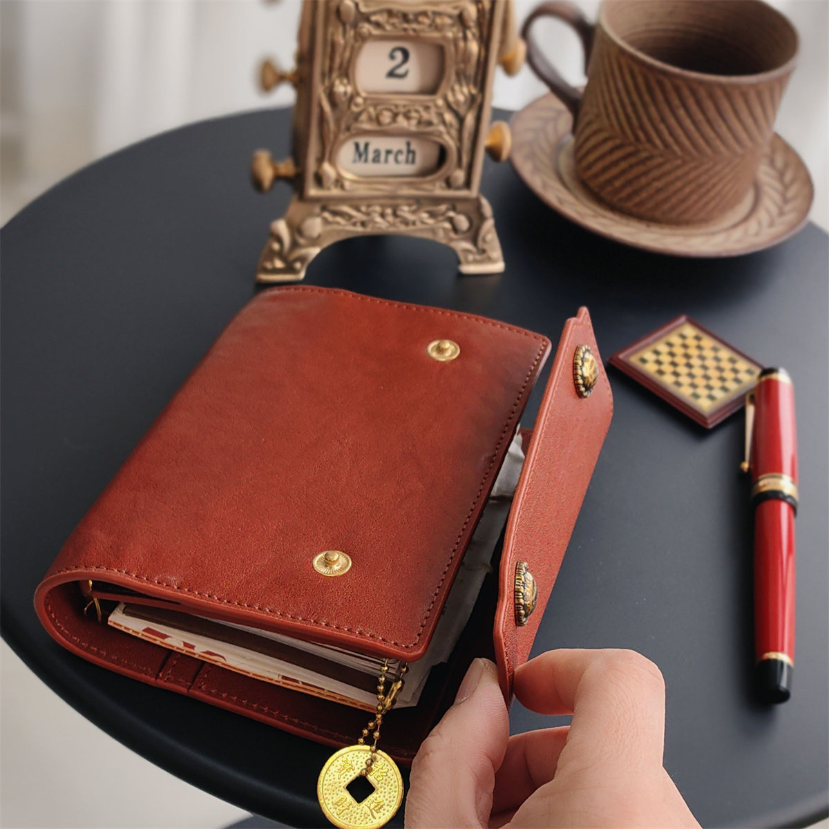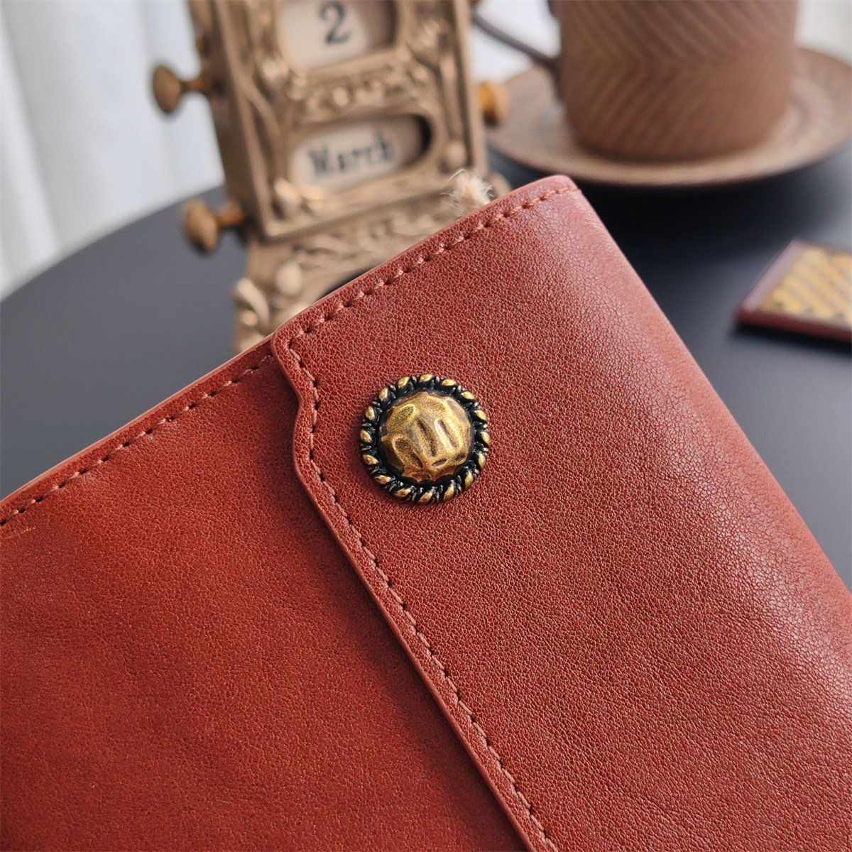 QY原创时光植鞣皮进口真皮麦田时光活页三折手帐装饰扣A5A6A7A8A9