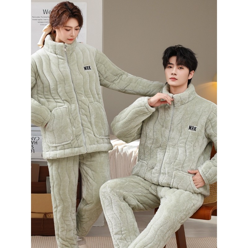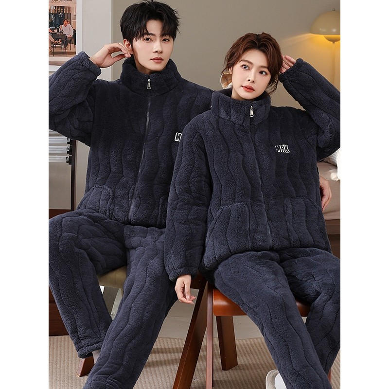 冬季珊瑚绒男士睡衣三层夹棉加厚加绒法兰绒秋冬款家居服保暖套装