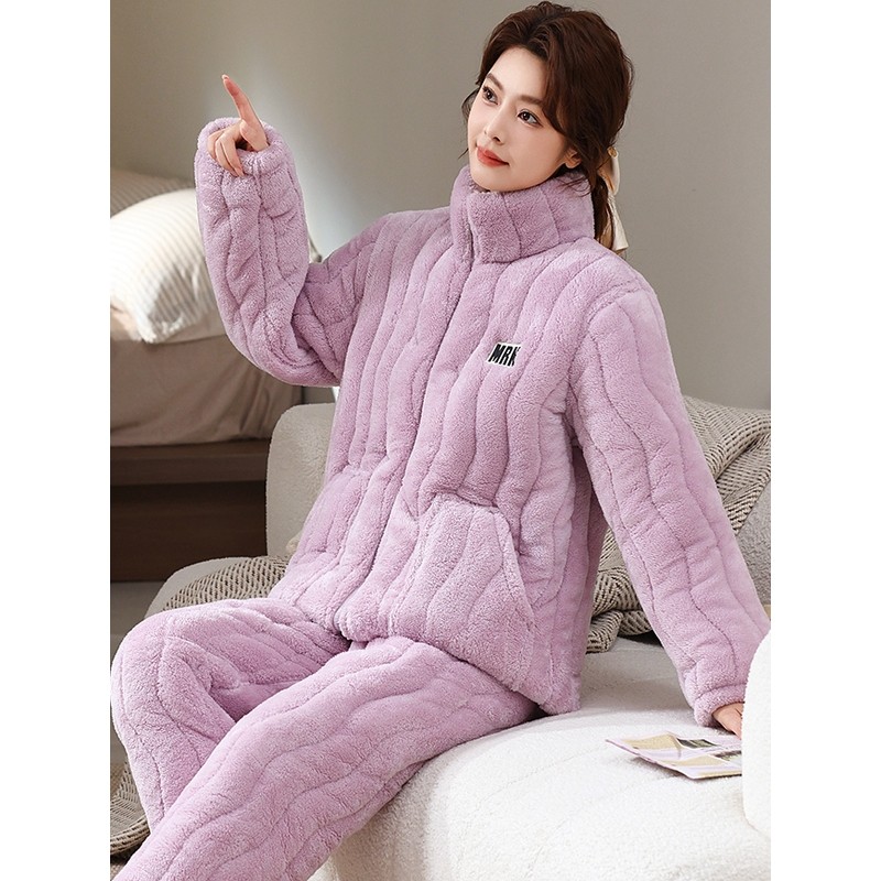2025年冬款珊瑚绒睡衣女秋冬季加厚法兰绒加绒套装家居服春秋新款