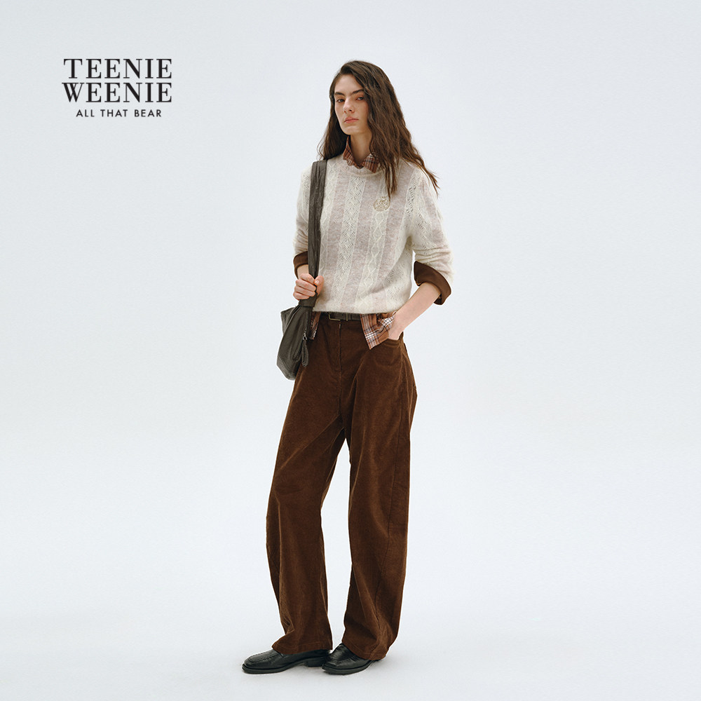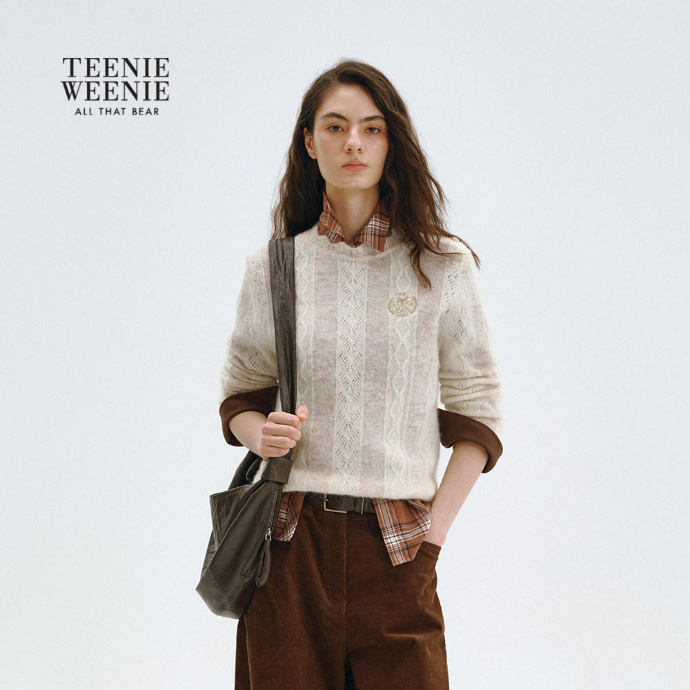 TeenieWeenie小熊女装毛针织衫秋冬季竖条纹肌理感圆领套头毛衣