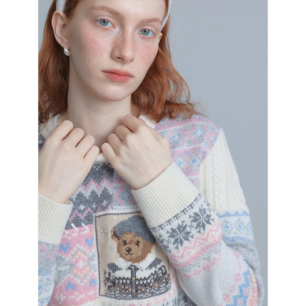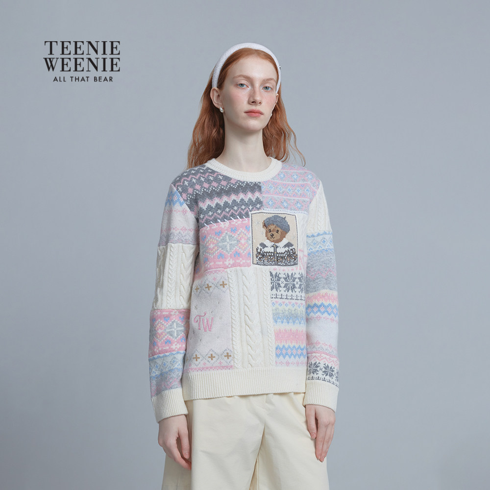 TeenieWeenie小熊女毛针织衫秋冬季活力休闲多彩提花圆领套头毛衣