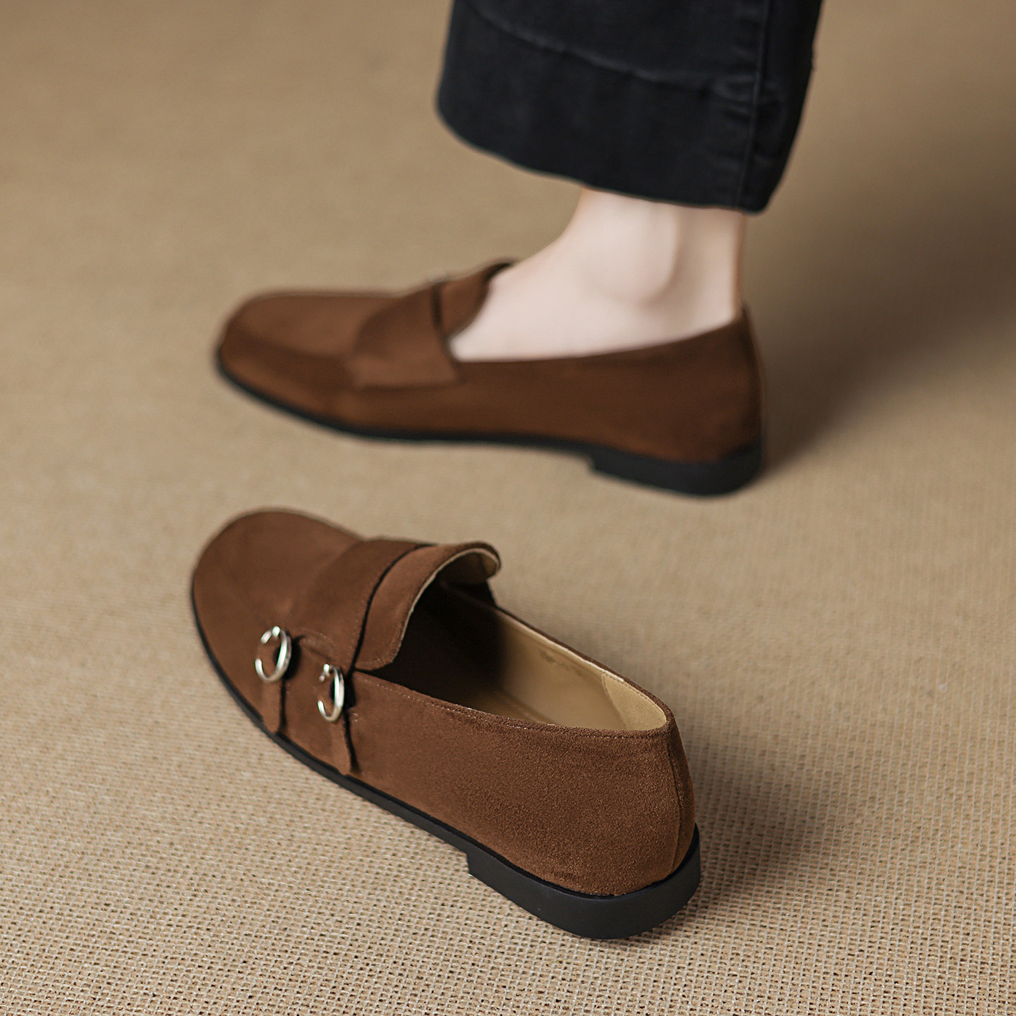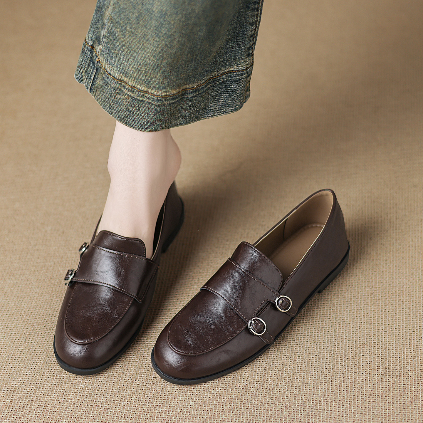 2025秋冬新款爆款巨好看棕色小皮鞋绝美单鞋女不累脚一脚蹬平底鞋