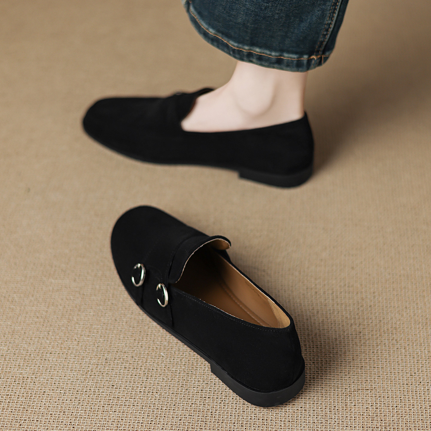 米霏~法式平底芭蕾单鞋女秋冬2025新款软底一脚蹬蛋卷鞋大码女鞋