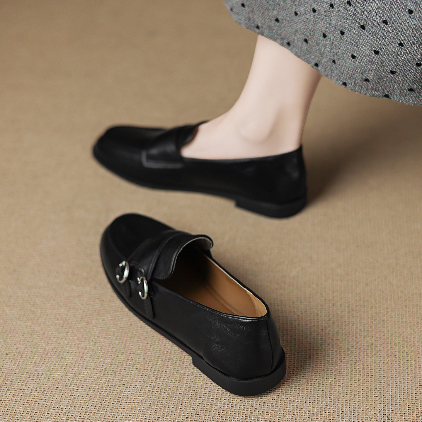 真皮英伦风小皮鞋女鞋子2025春秋新款潮乐福鞋黑色平底单鞋豆豆鞋