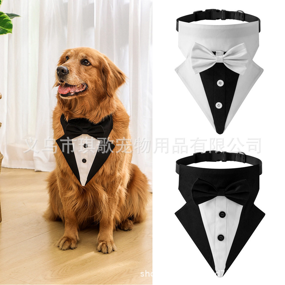 新款婚宴西装宠物口水巾狗项圈宠物三角巾宠物领结婚礼西装三角巾