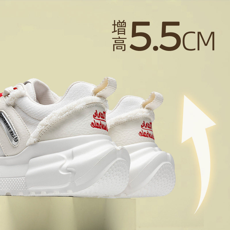 红色厚底德训鞋女款2025新款冬季百搭休闲轻便小个子增高加绒鞋子