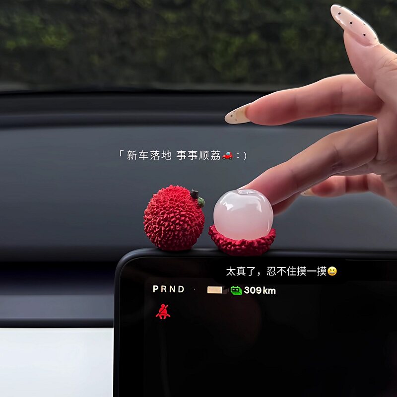 可爱荔枝车内装饰品汽车中控台2026新款车载顺顺荔荔大橘大荔摆件