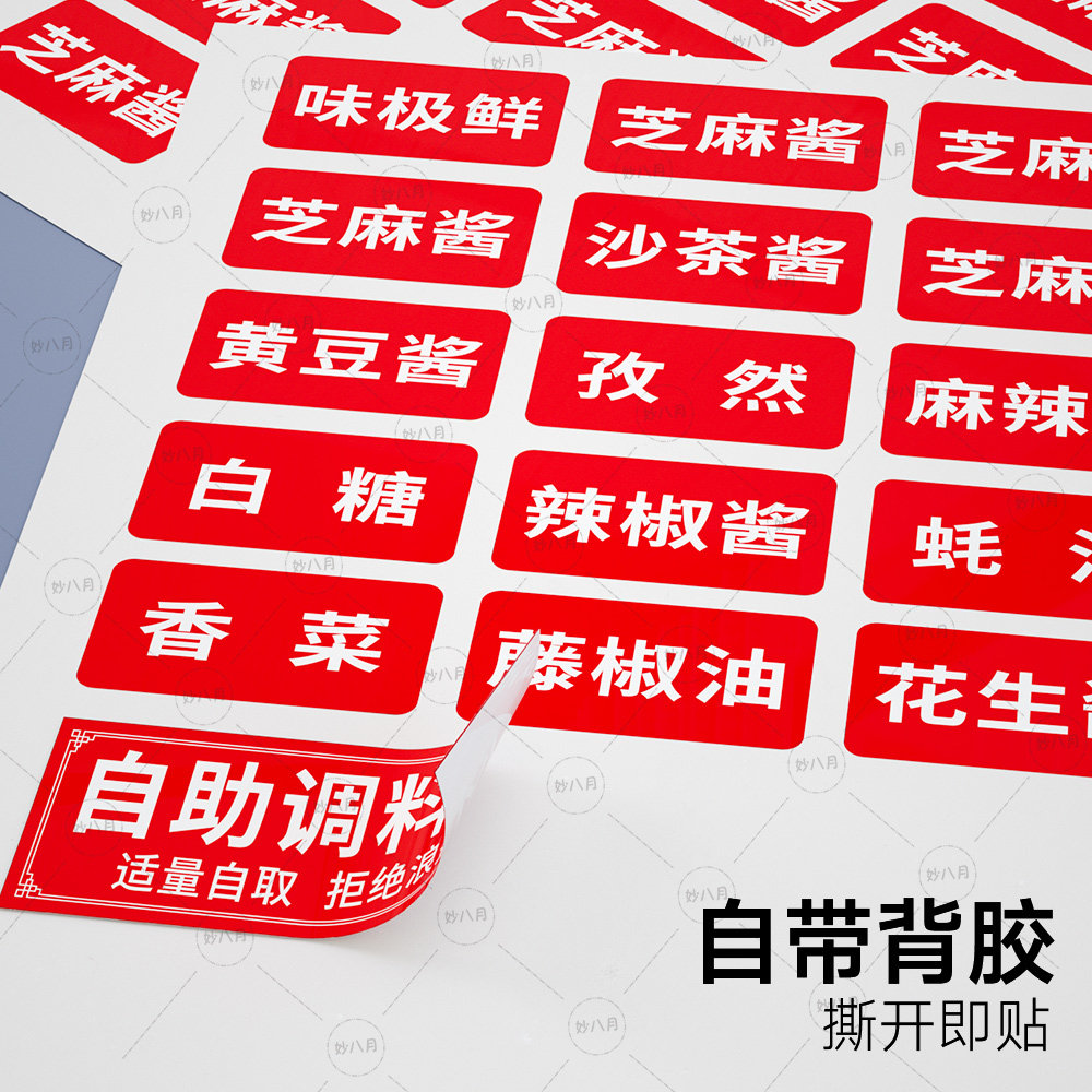 调料贴纸小火锅串串蘸料名称贴纸火锅店自助餐厅酒店厨房佐料贴防水防油家用瓶罐分类标签贴
