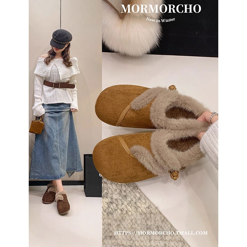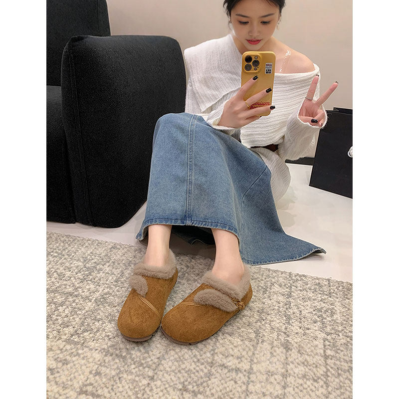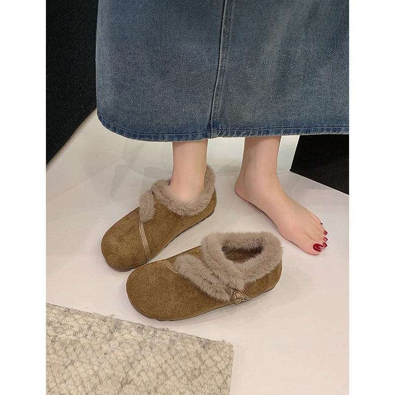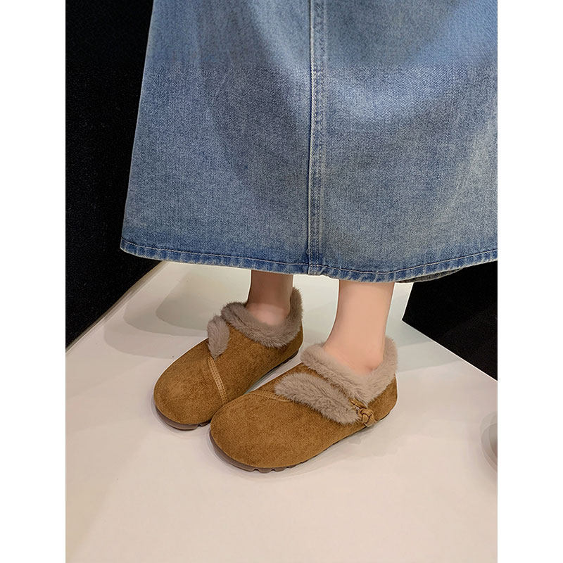 赵露思同款加绒勃肯鞋女冬季保暖一脚蹬毛毛鞋防滑软底豆豆鞋毛绒