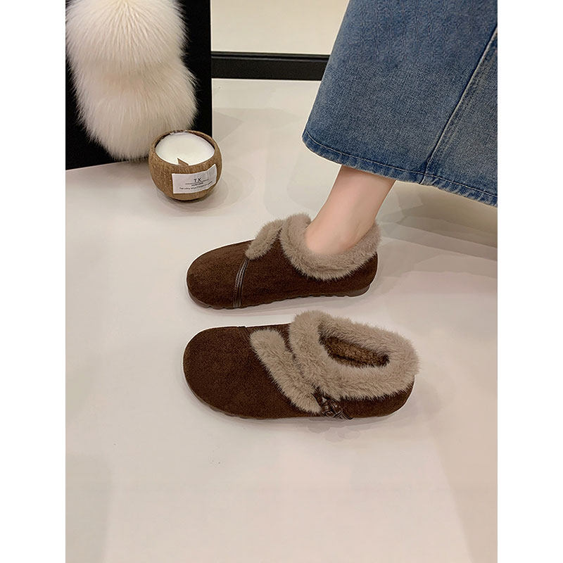 TATAFOCUS~加绒毛毛鞋韩版圆头皮带扣2025冬季新款勃肯鞋女35-28