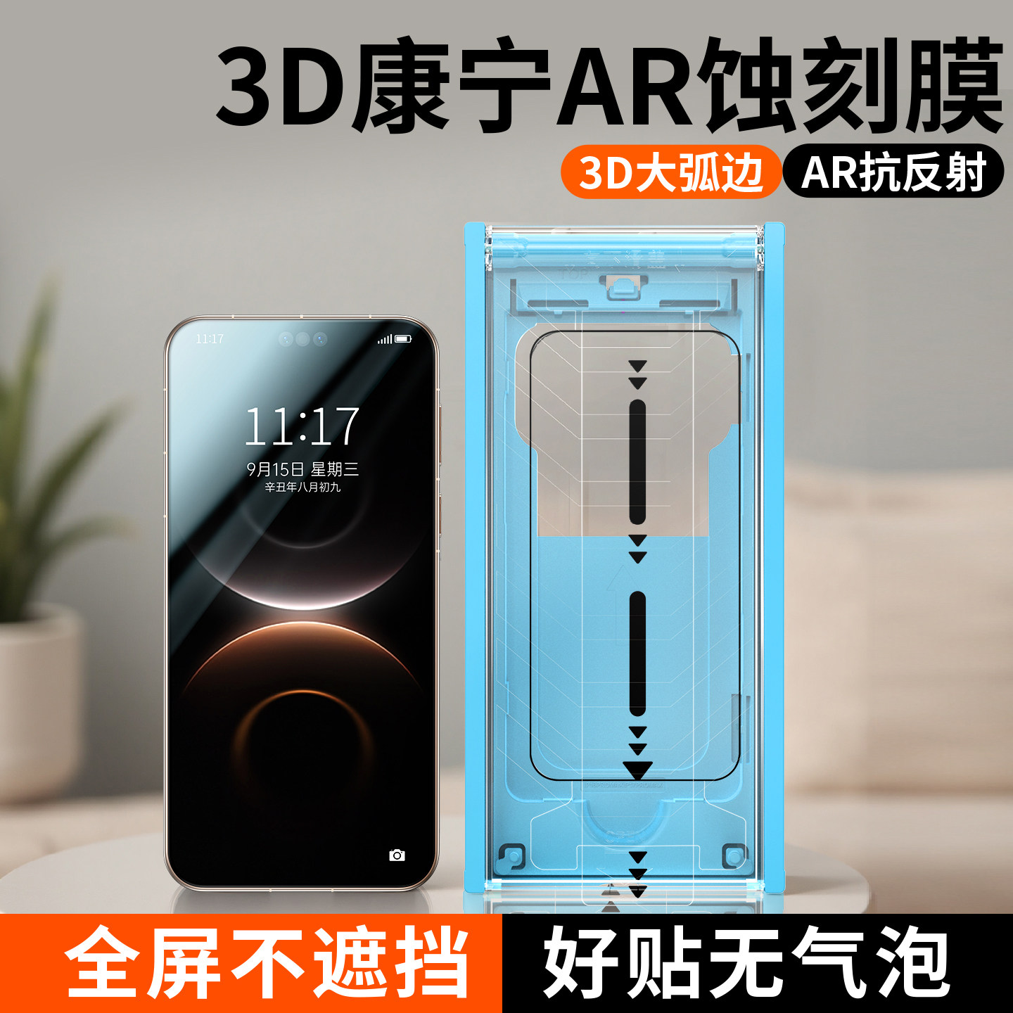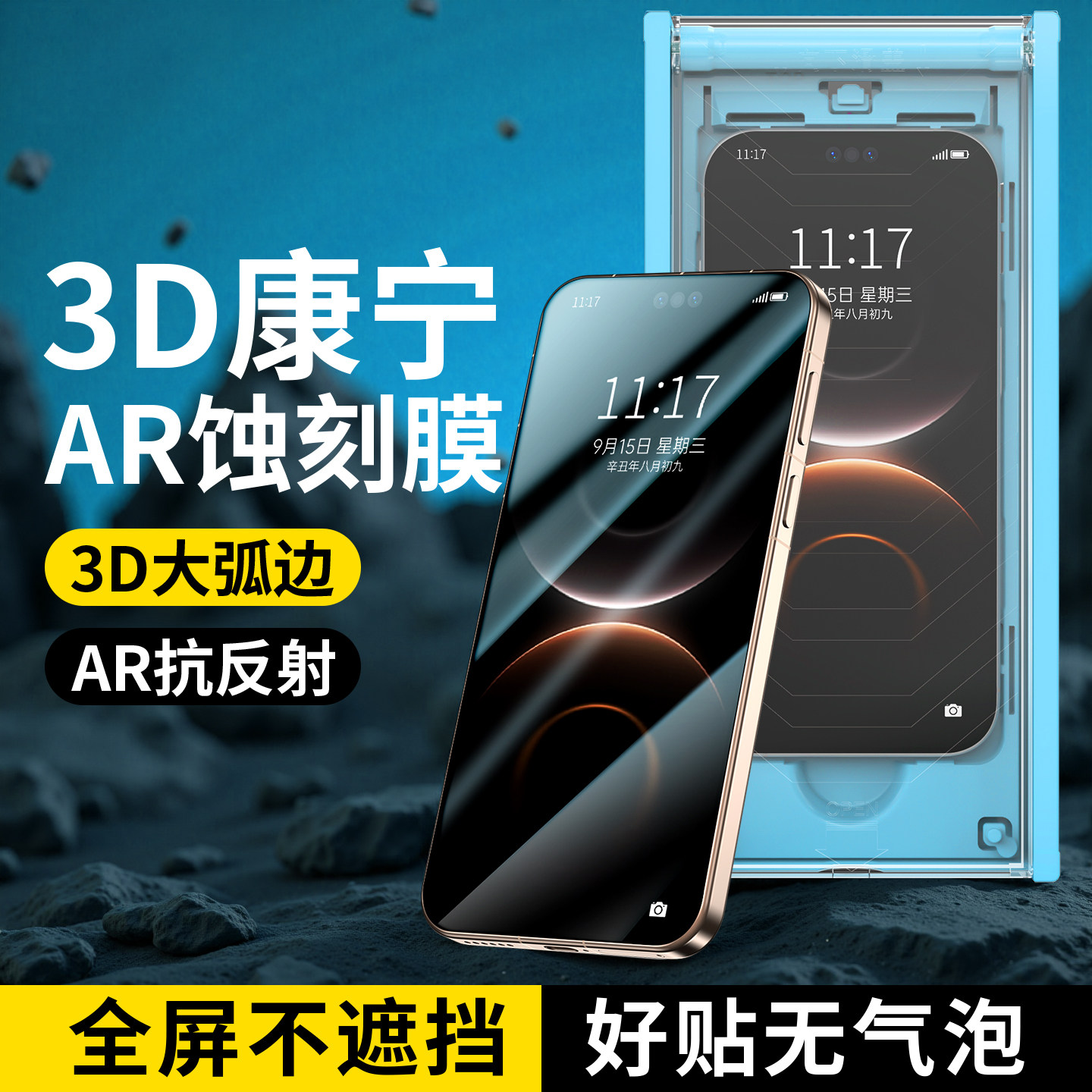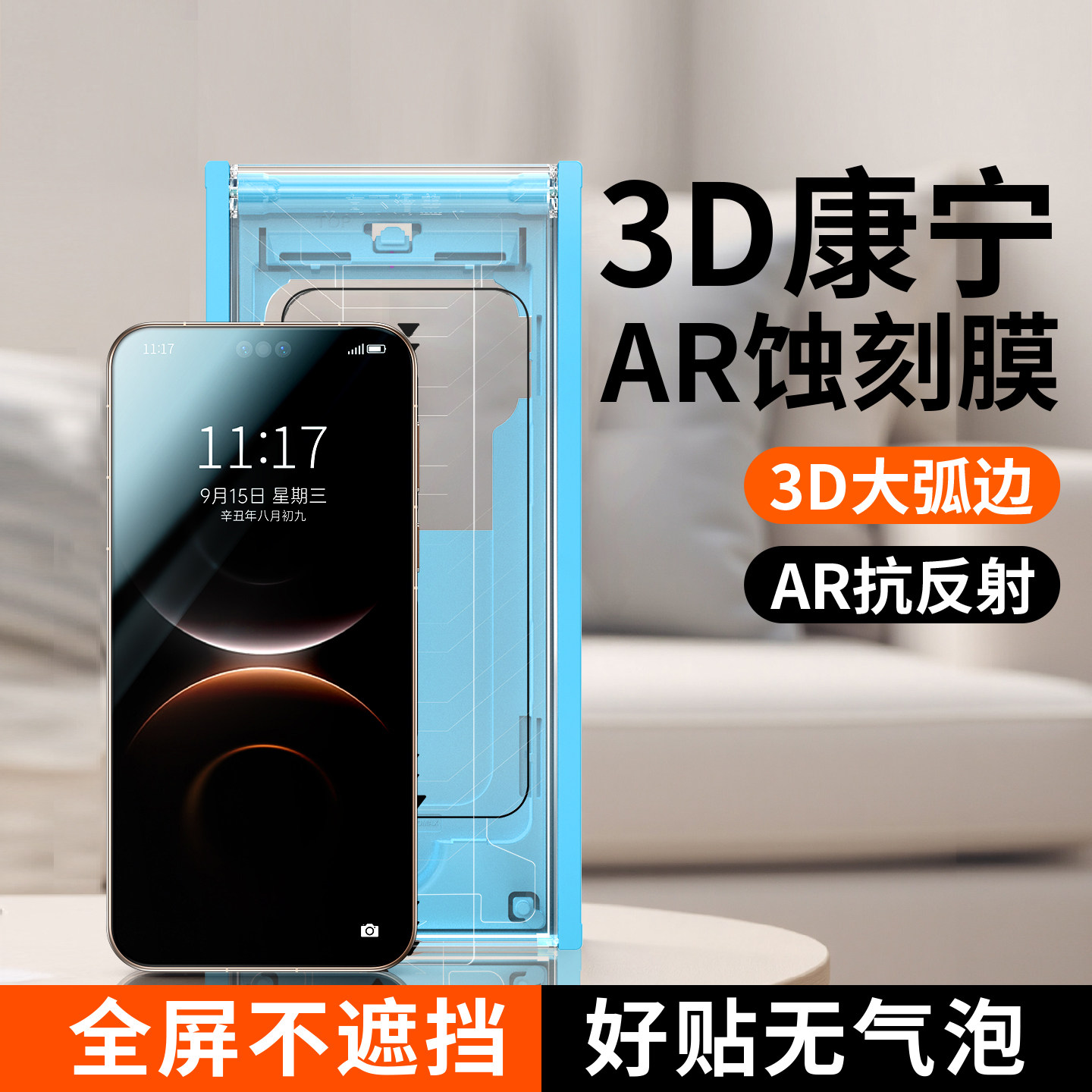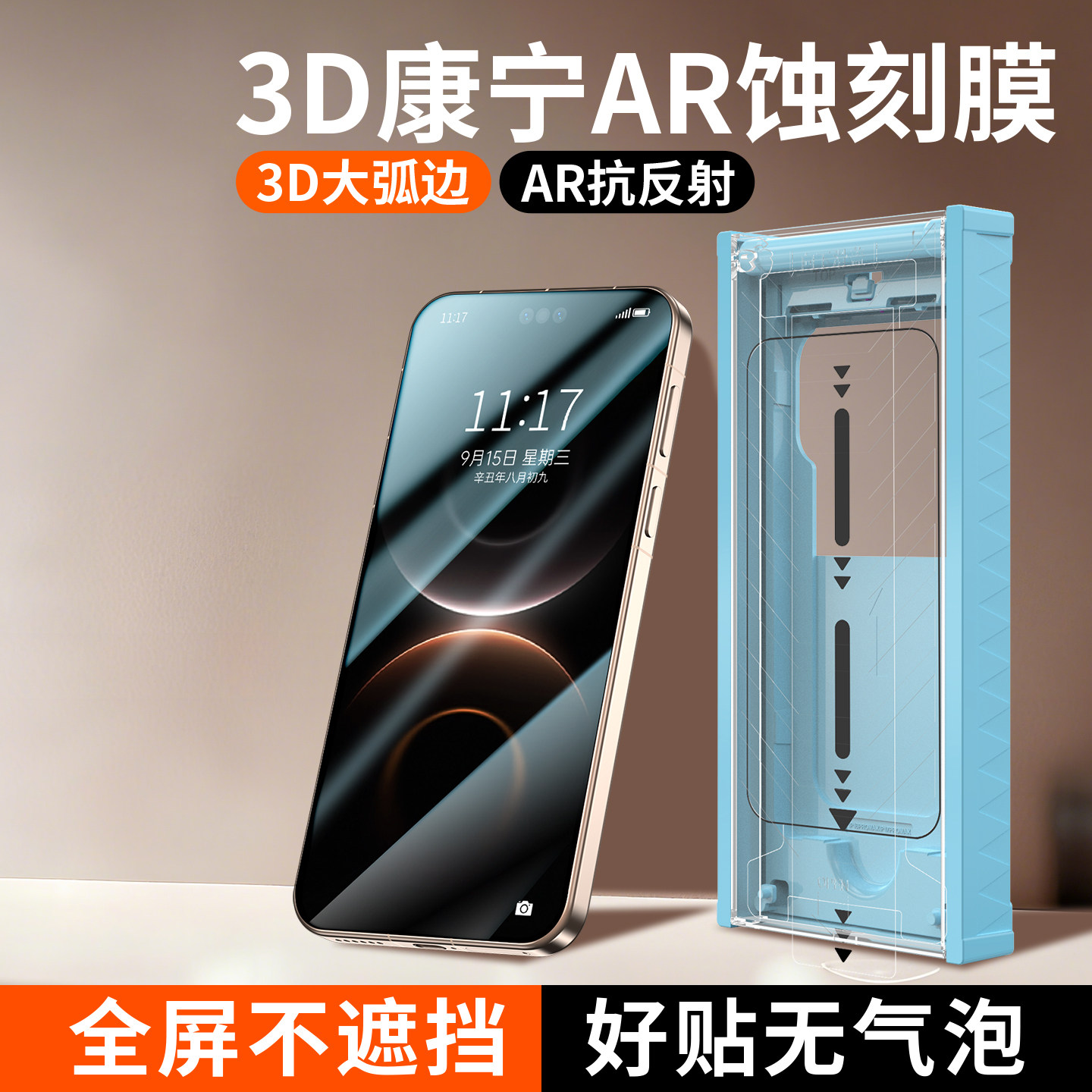 【17同款AR抗反射】哇牛3D热弯0.15mm裸感超薄钢化膜适用苹果iPhone17promax全屏覆盖包15保护16plus手机贴膜