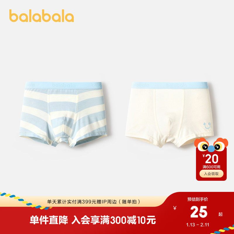 巴拉巴拉男童内裤棉平角儿童四角短裤小童中大童不夹PP弹力两条装