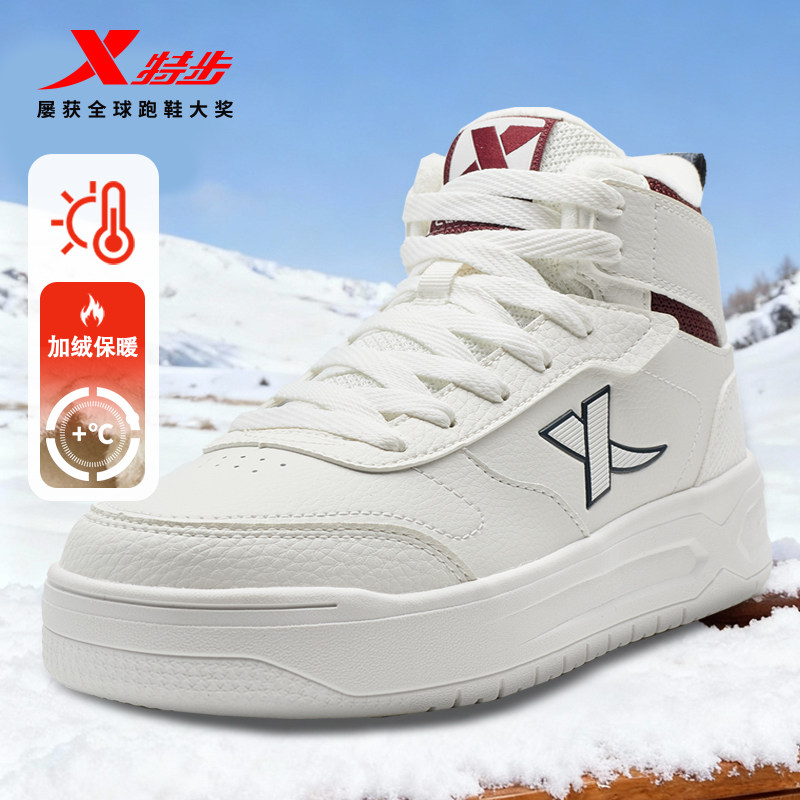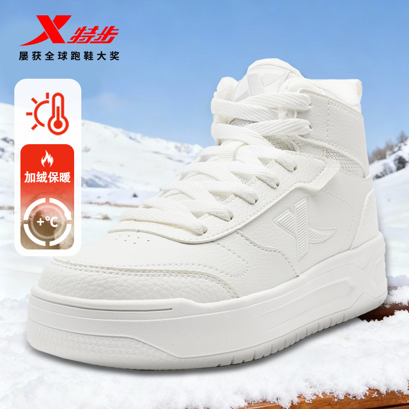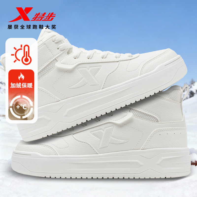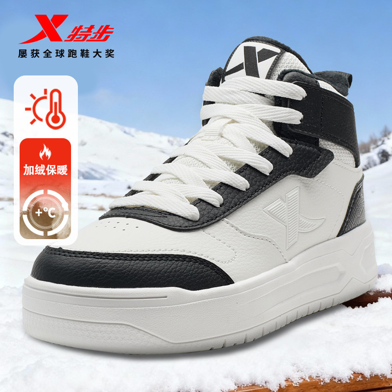 特步板鞋加绒加厚高帮男女二棉鞋冬季板鞋女鞋时尚官方旗舰店正品