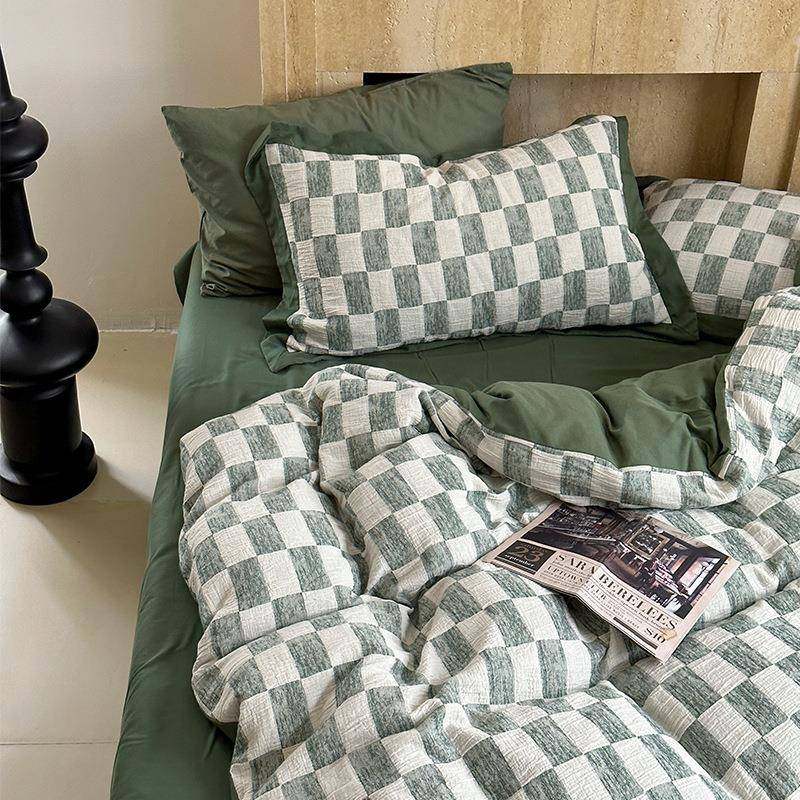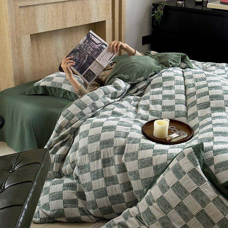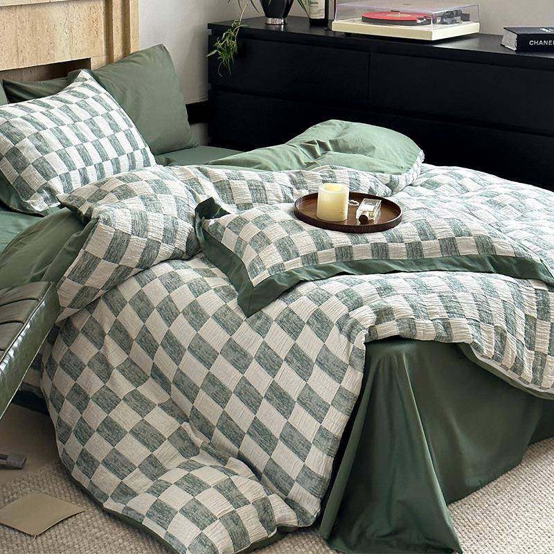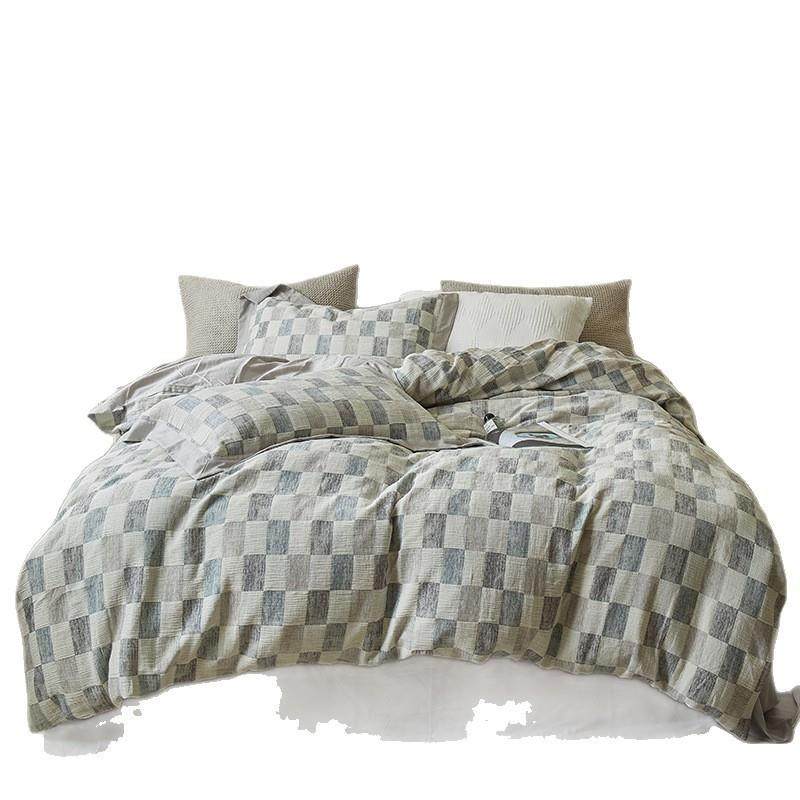 60S纯棉水洗棉四件套空气棋盘系列加厚全棉复古风床单床笠款套件