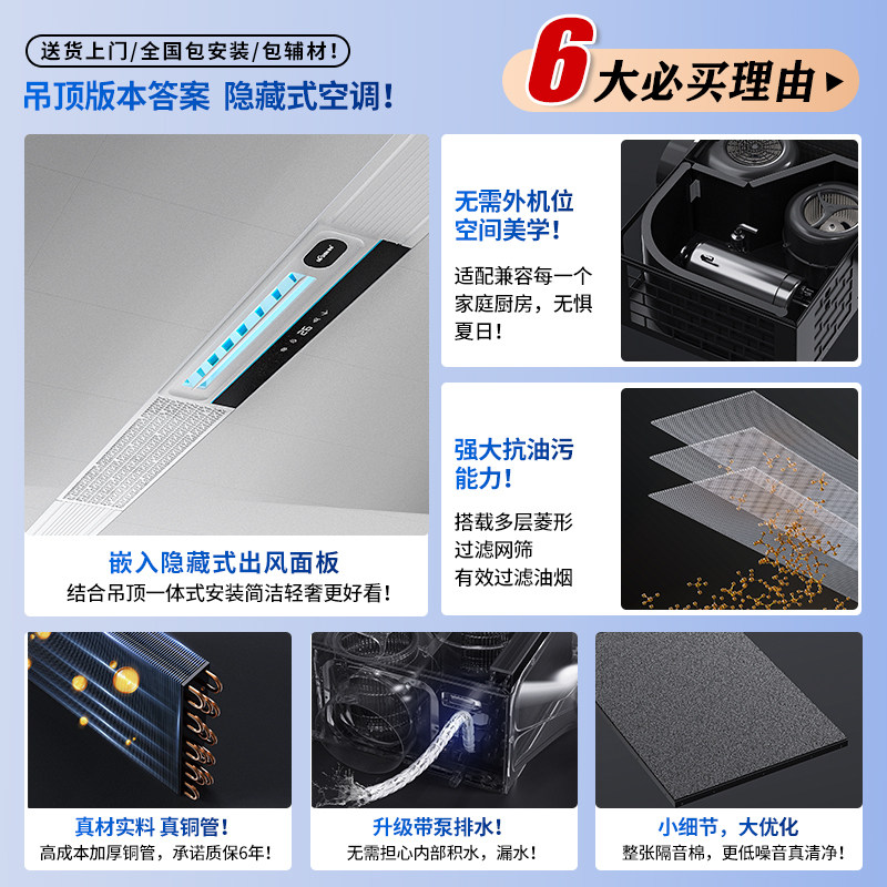 Booshen厨房专用凉霸空调 一体机隐藏嵌入式防油烟制冷家用空调