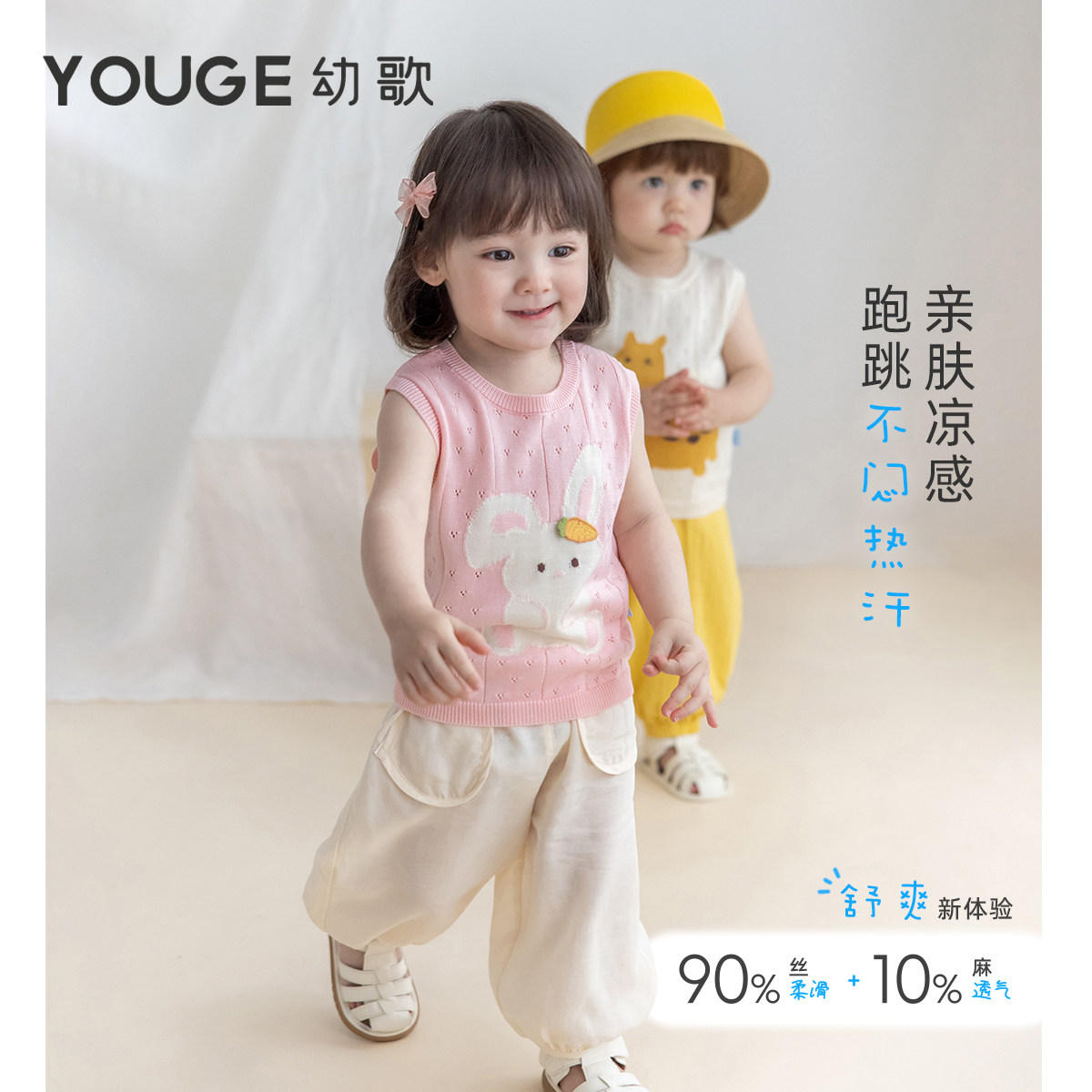 YOUGE幼歌 婴幼儿夏季新款清凉撞色包边简约口袋舒适清凉防蚊裤潮