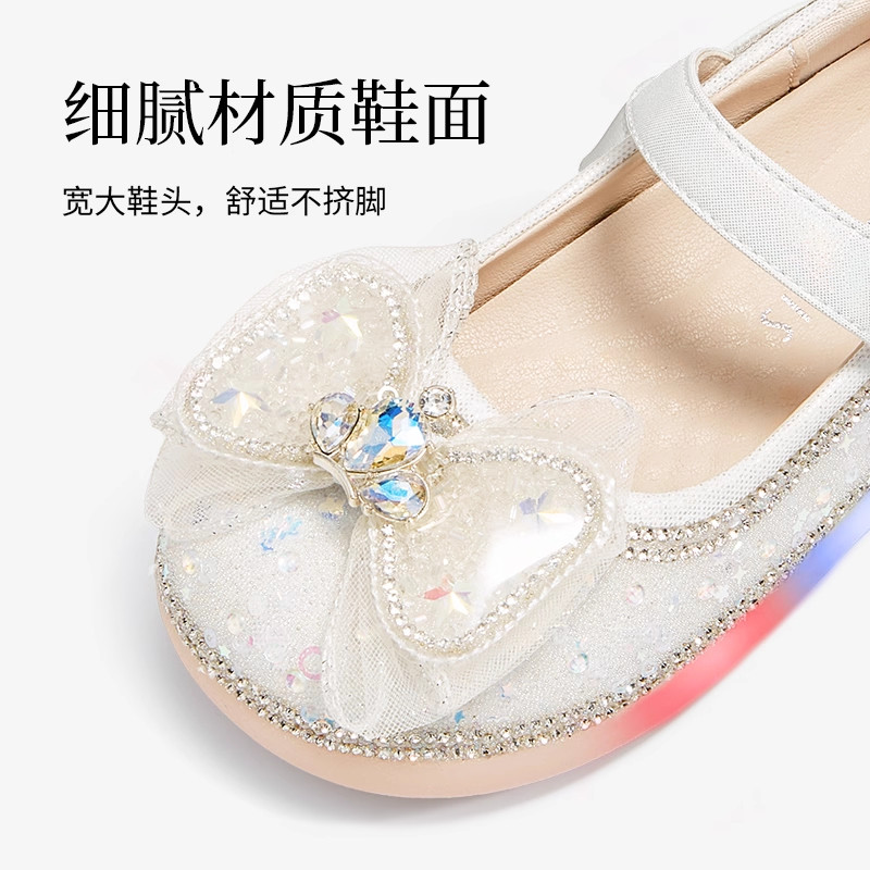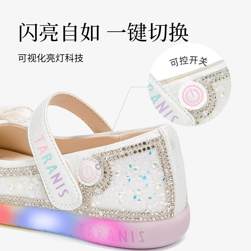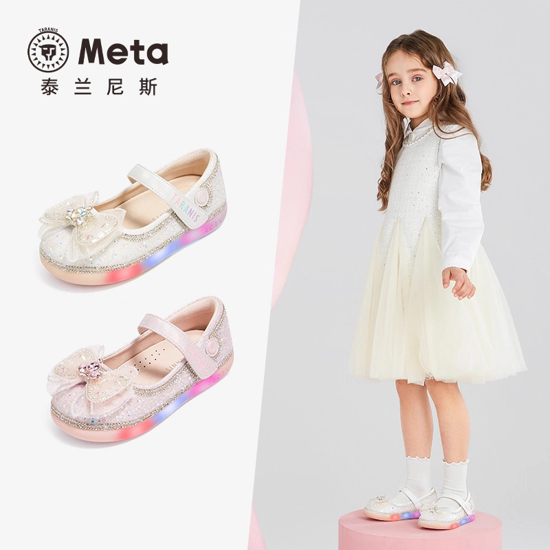 泰兰尼斯meta春季新款女童公主皮鞋女孩水晶鞋软底演出单鞋闪灯鞋