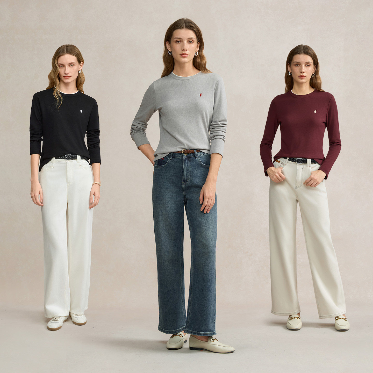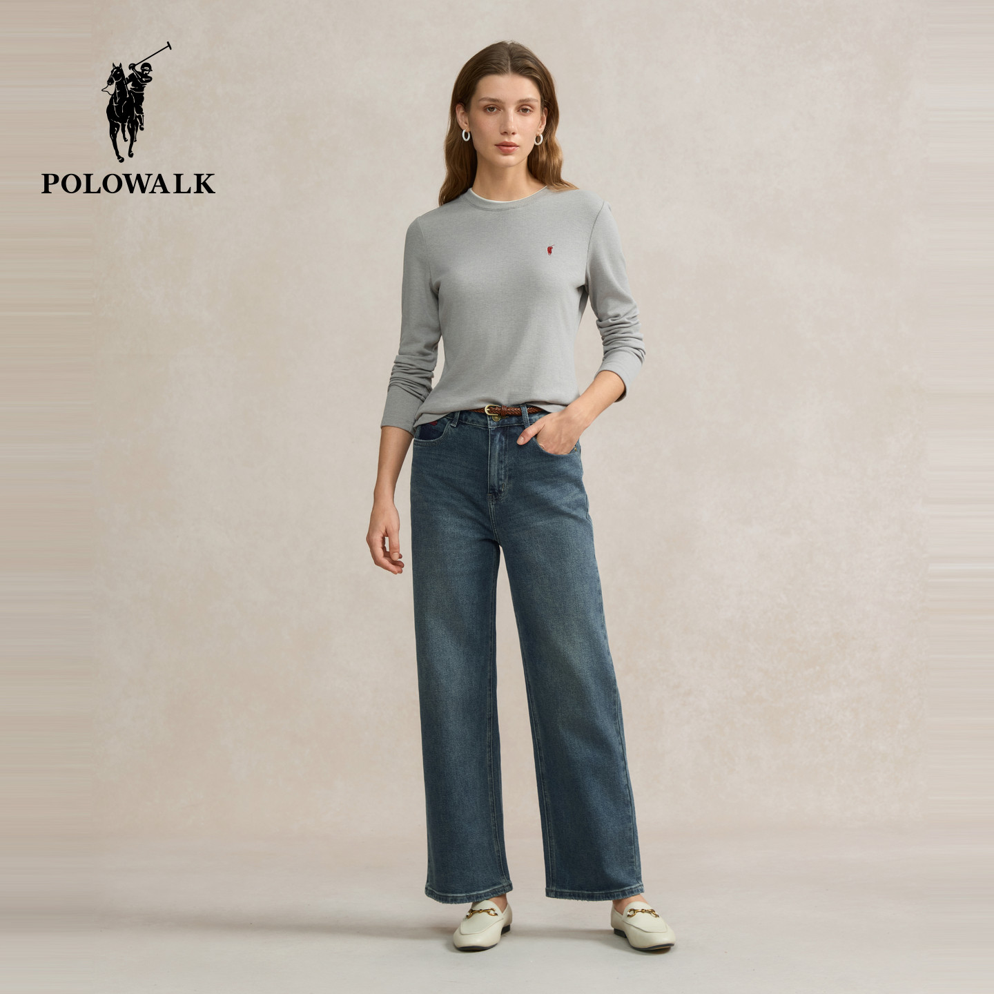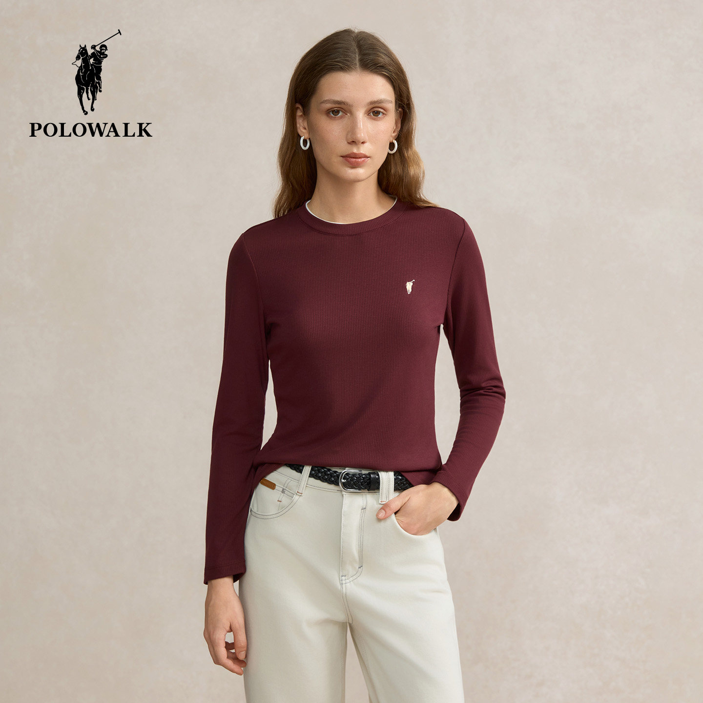 POLOWALK女装2026春季新款女士长袖T恤休闲上衣圆领打底衫春装