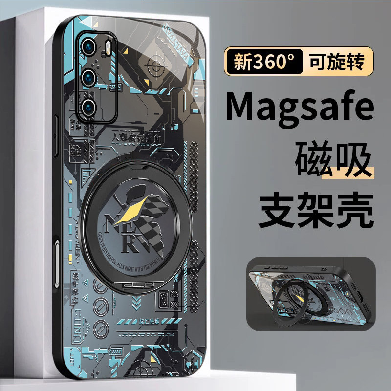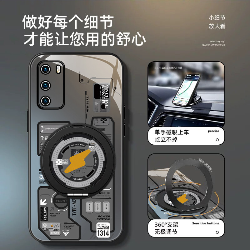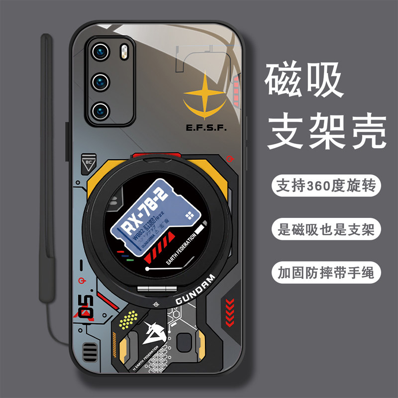 适用华为p40手机壳男p30新款p20pro高达机甲p40pro+磁吸旋转支架P30PRO保护套全包防摔潮牌酷炫高级感por外壳