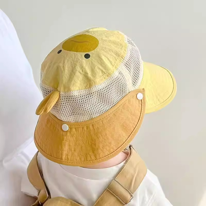 宝宝帽子夏季薄款透气网眼防晒帽卡通男女童户外披肩遮阳帽韩外出