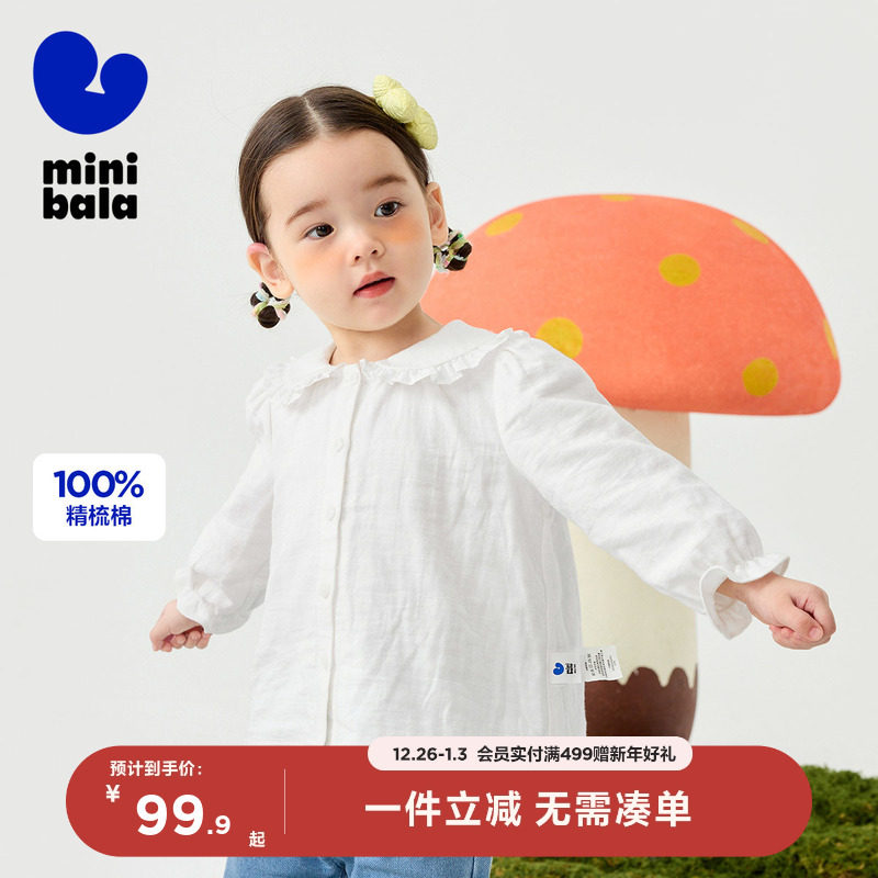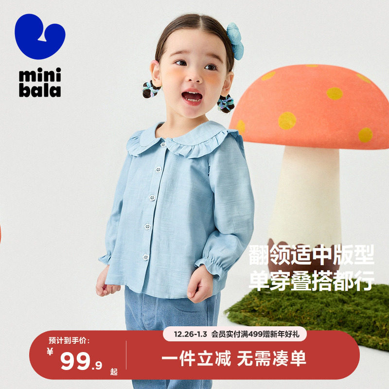 迷你巴拉巴拉女童长袖衬衫2025新品甜美百搭翻领全棉宝宝上衣