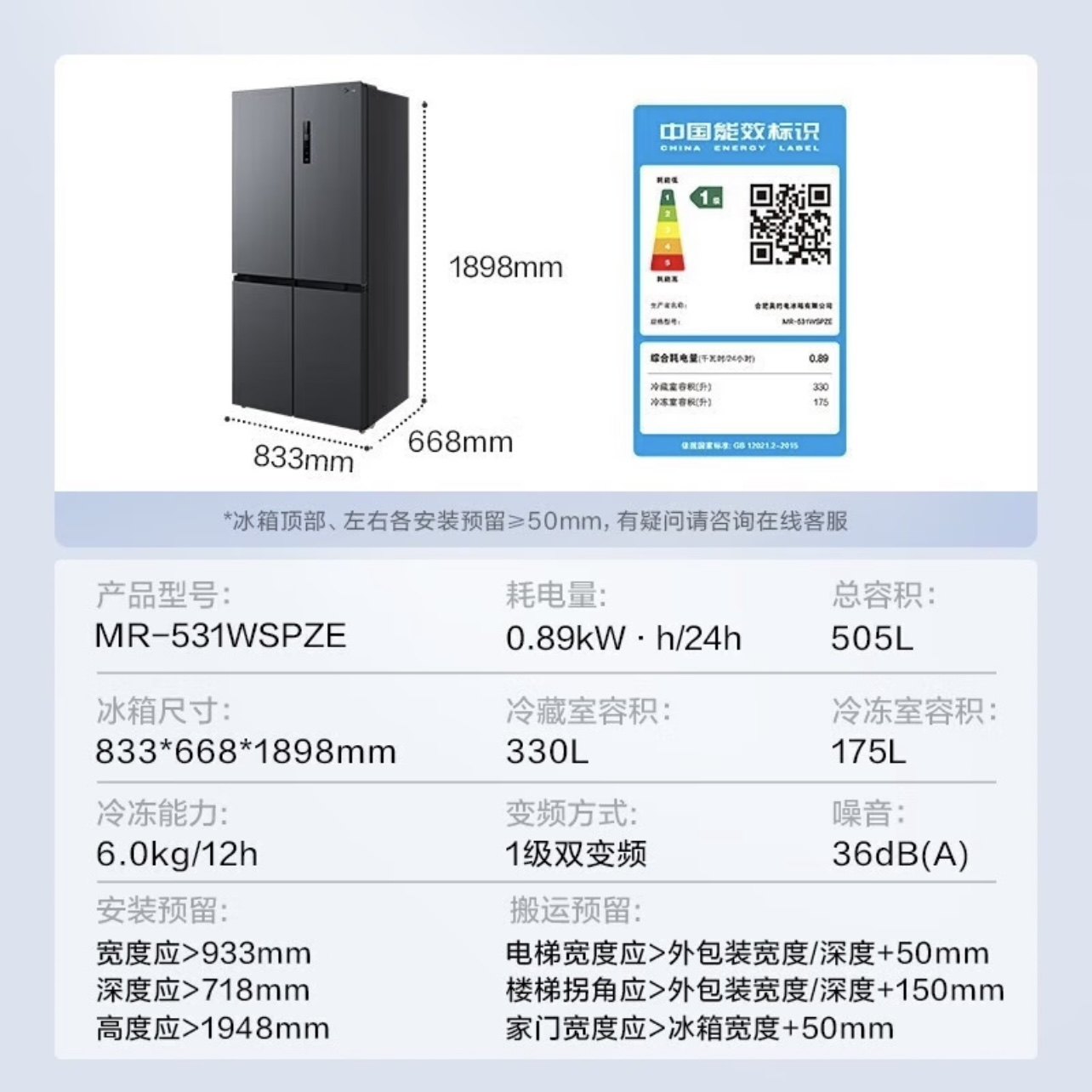 Midea/美的 MR-531WSPZE/532双系统变频风冷无霜十字四开门冰箱