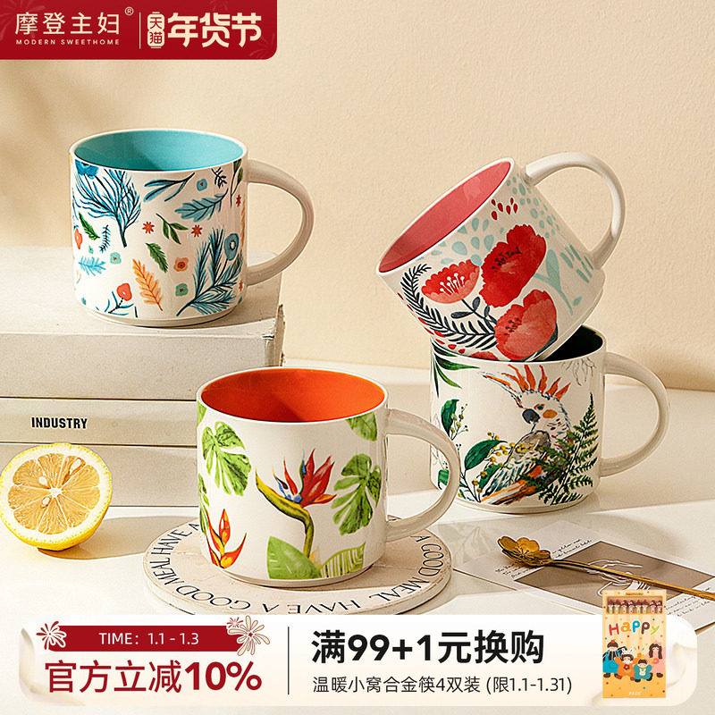 摩登主妇复古马克杯家用喝水杯早餐杯咖啡杯女生办公室杯子陶瓷杯