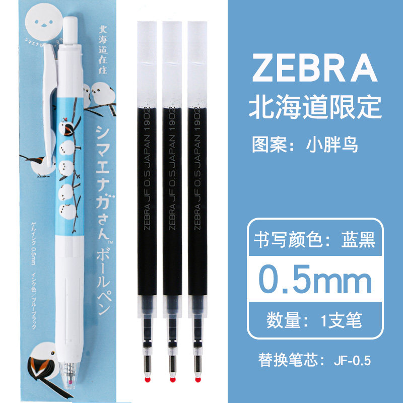 新版北海道小胖鸟限定日本zebra斑马JJ15中性笔稀有水笔0.5蓝黑笔