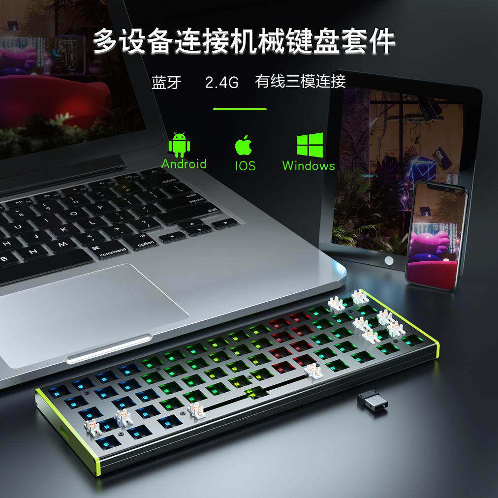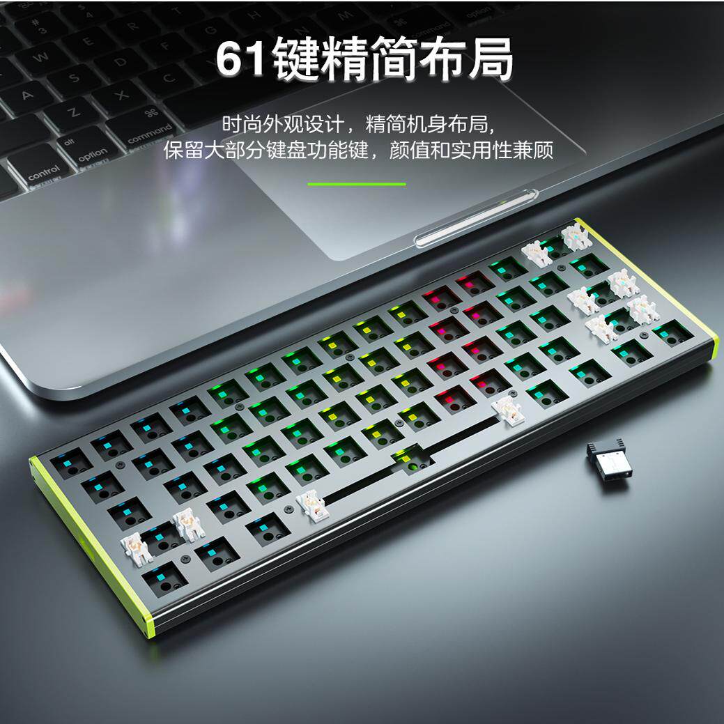 61键铝合金三模RGB轴座插拔套件客制化机械键盘F3361