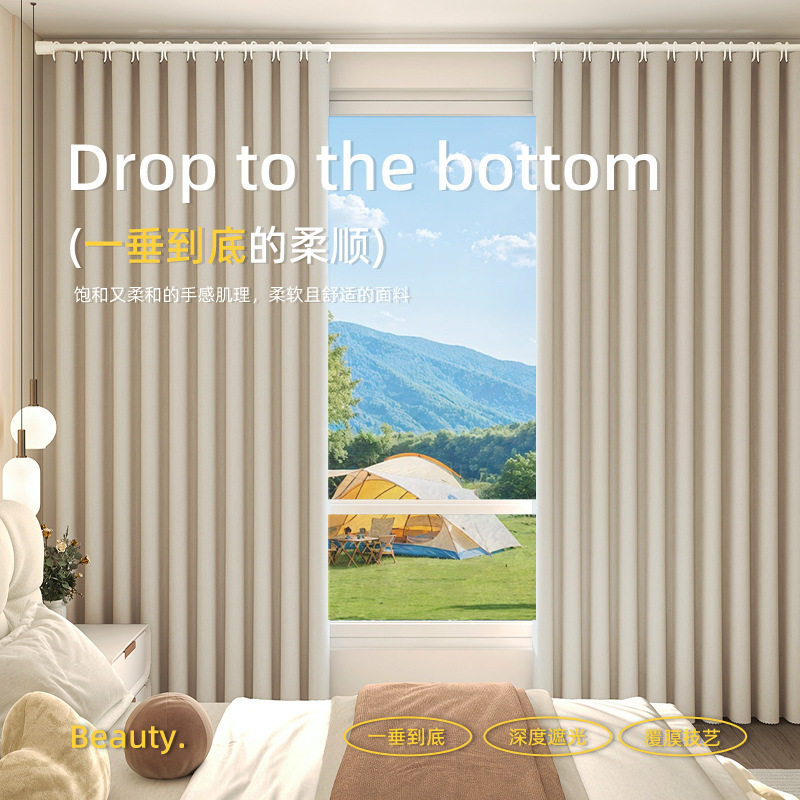 全遮光窗帘遮阳布卧室成品阳台隔热防晒窗户简易帘免打孔新款
