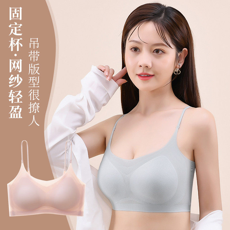 青子菁美背内衣女吊带文胸一体背心式薄款无痕文胸