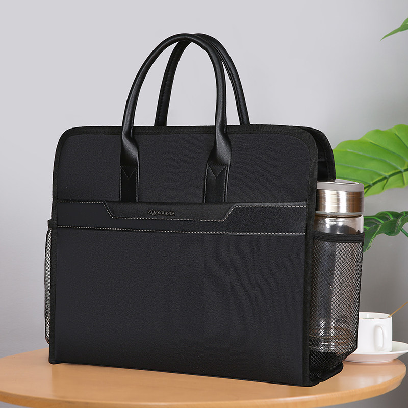 文件包手提袋男款定制logo公文包带水杯位女士通勤商务大容量防水